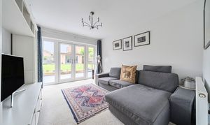 The property is approached via a block-paved driveway, with parking for several vehicles, leading to the integral double garage with power & lighting. Side gates either side lead to the south-facing rear garden which is mainly laid to lawn with raised flower beds, garden shed, garden room with power & lighting, and a full-width area of patio, providing the perfect space for alfresco dining and summertime entertaining.