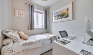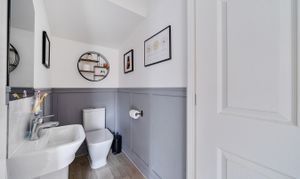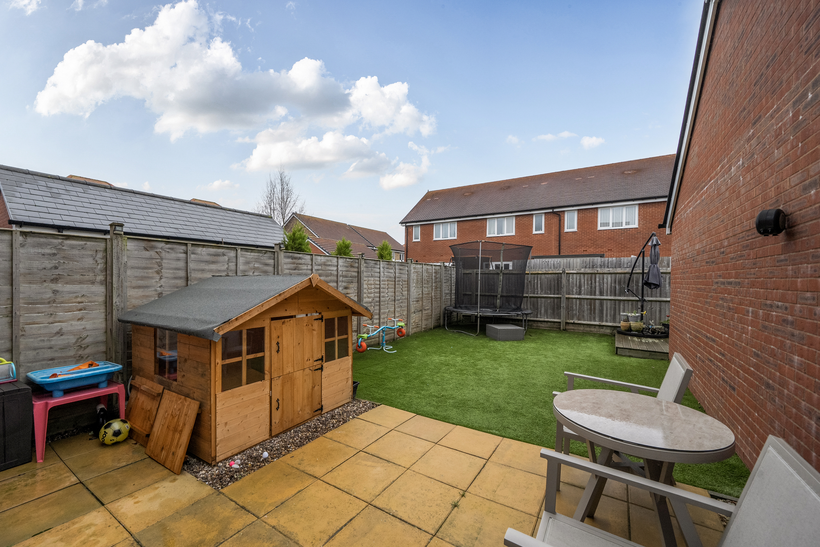 The rear garden has been designed to be both attractive and easy to maintain. Immediately outside the French doors is a paved seating area, ideal for outdoor dining, leading onto an area of low maintenance artificial grass. To the rear of the garage is a decked area, providing an additional private space for relaxing or entertaining. The garden is fully enclosed and enjoys a good degree of privacy. A side gate provides direct access to the private driveway with ample parking for two cars and a detached single garage. To the front, the property is attractively presented with a pathway leading to the main entrance, creating a smart and welcoming first impression.