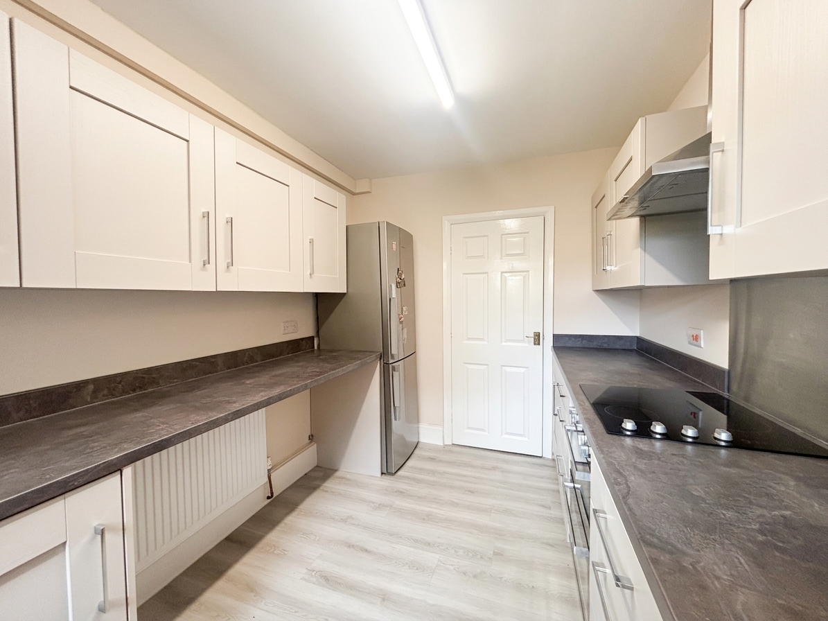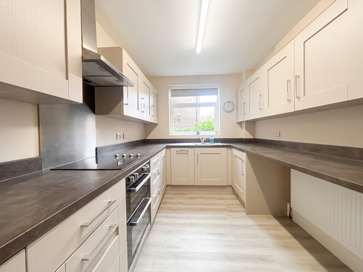 Integrated dishwasher and a new electric oven. Window overlooking the grounds.