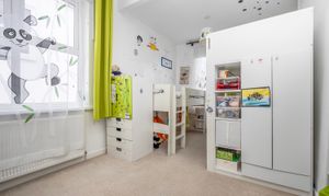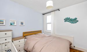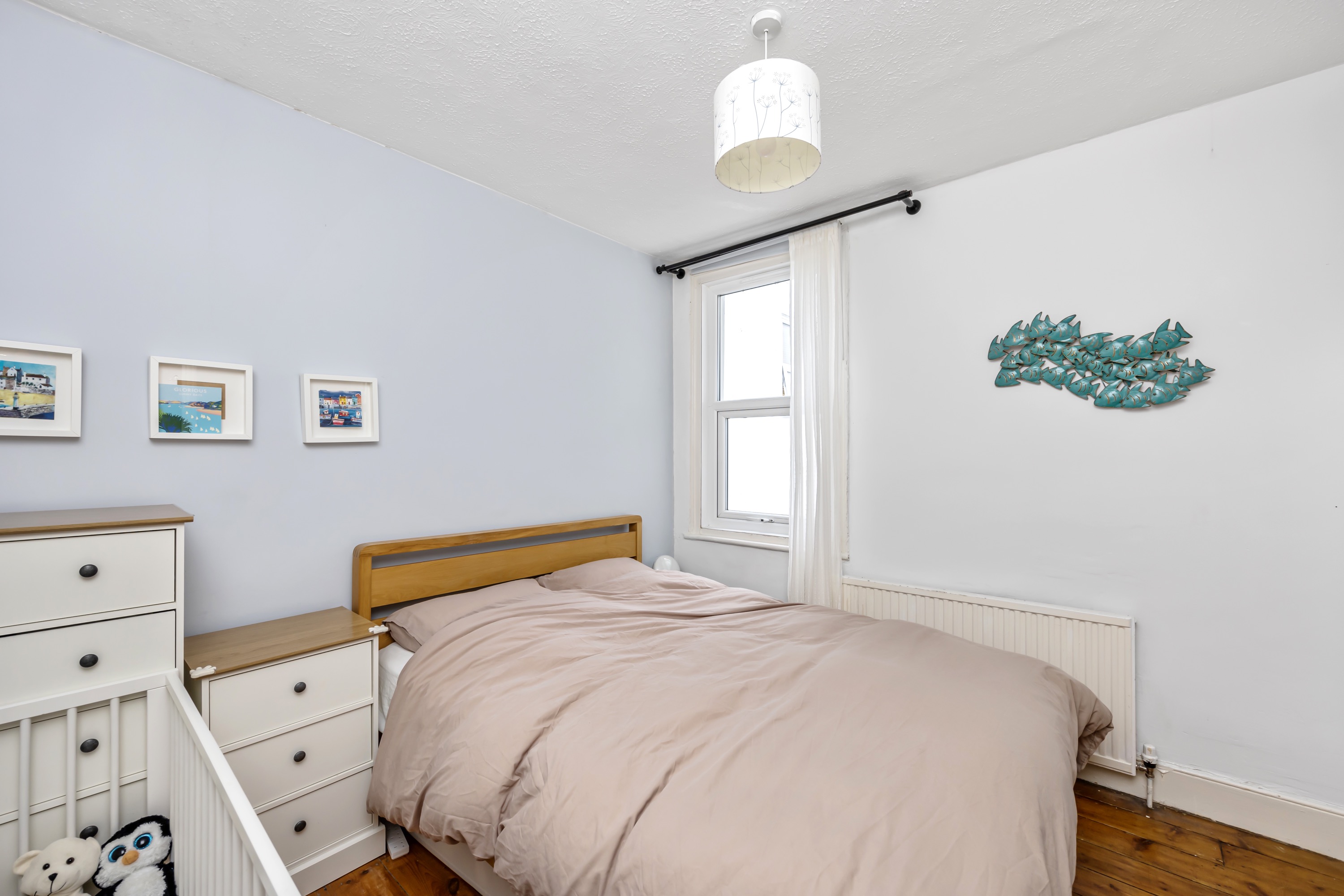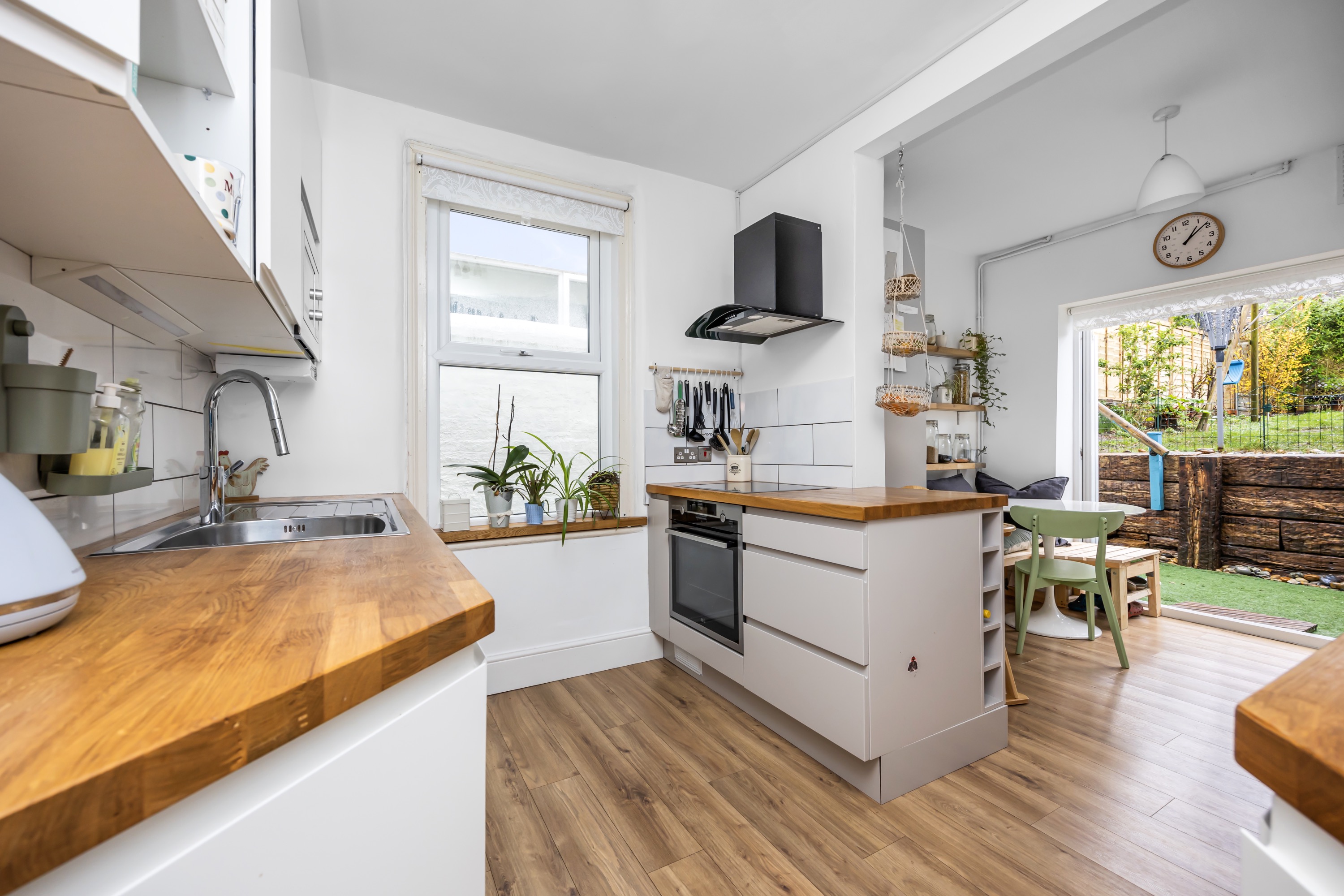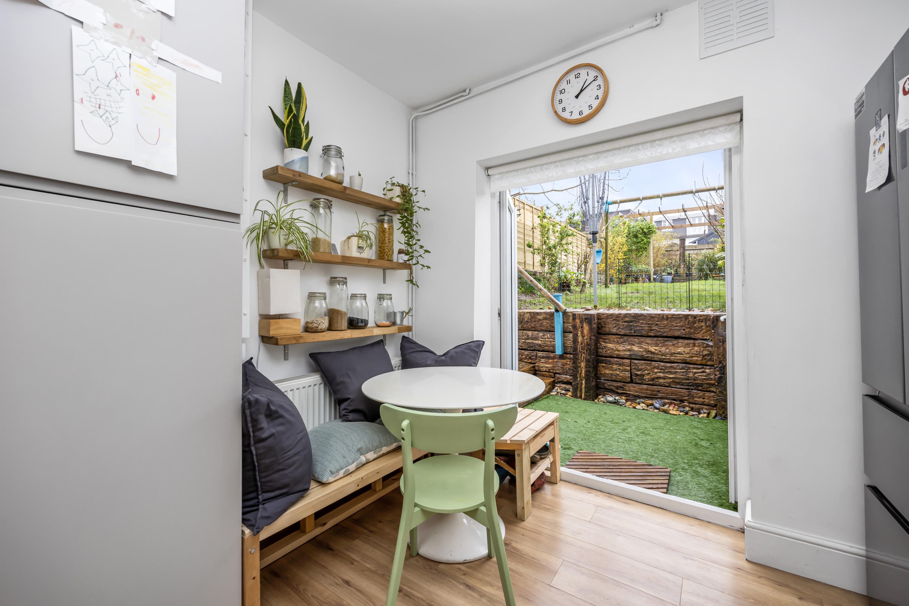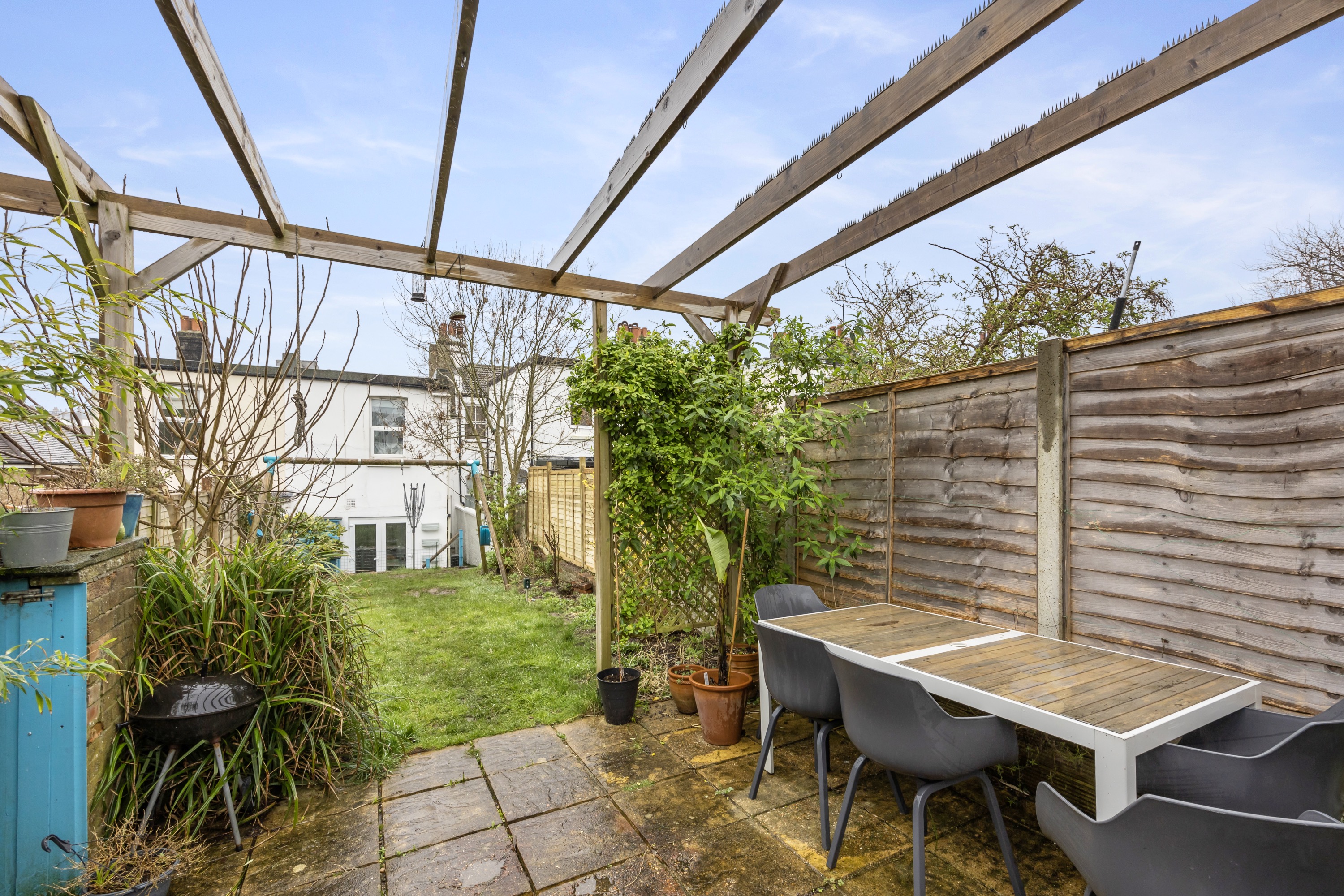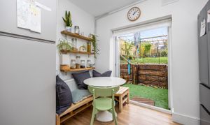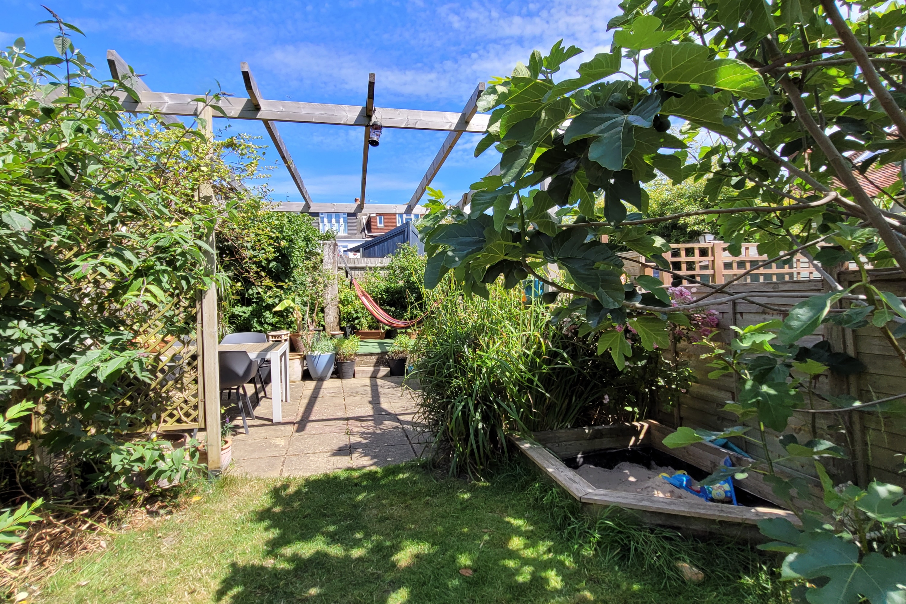 To the front, the home benefits from a small front garden, laid to pebble, and housing a storage shed – excellent to store bicycles if you have kids or commute to the station.