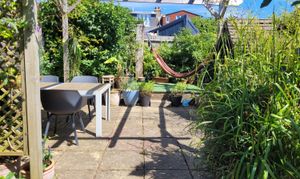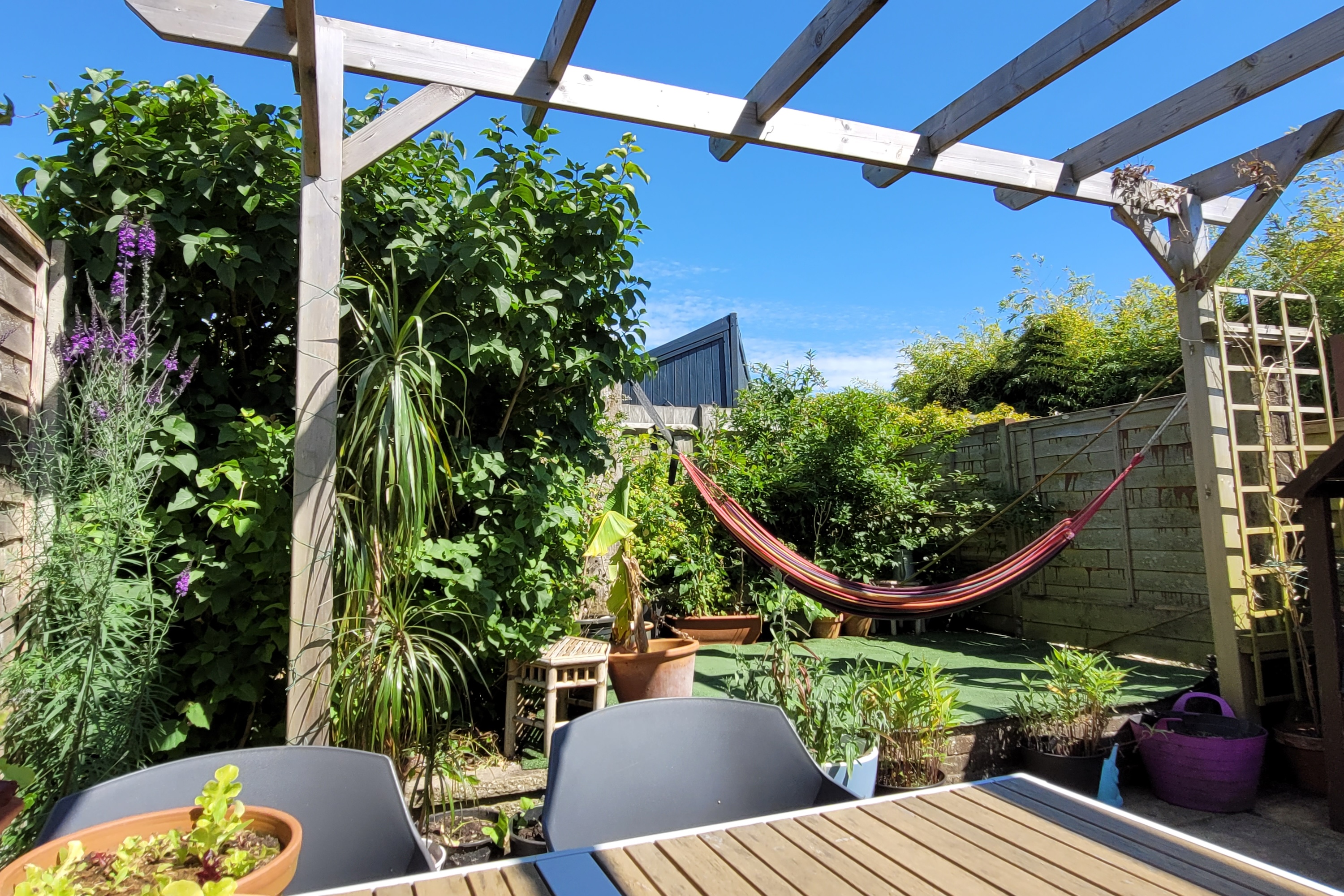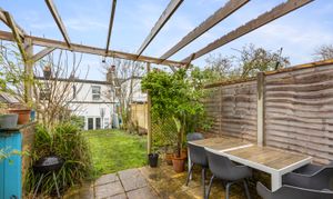 The garden is primarily laid to lawn whilst a discreet area of patio remains at the rear, sheltered by a pergola, making an excellent space to entertain guests or simply relax and unwind. Various mature trees and bushes surround the perimeter making this an incredibly private area to enjoy.