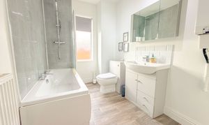 To the first floor are two well-proportioned double bedrooms, each offering comfortable accommodation, along with a surprisingly generous bathroom that serves the home.