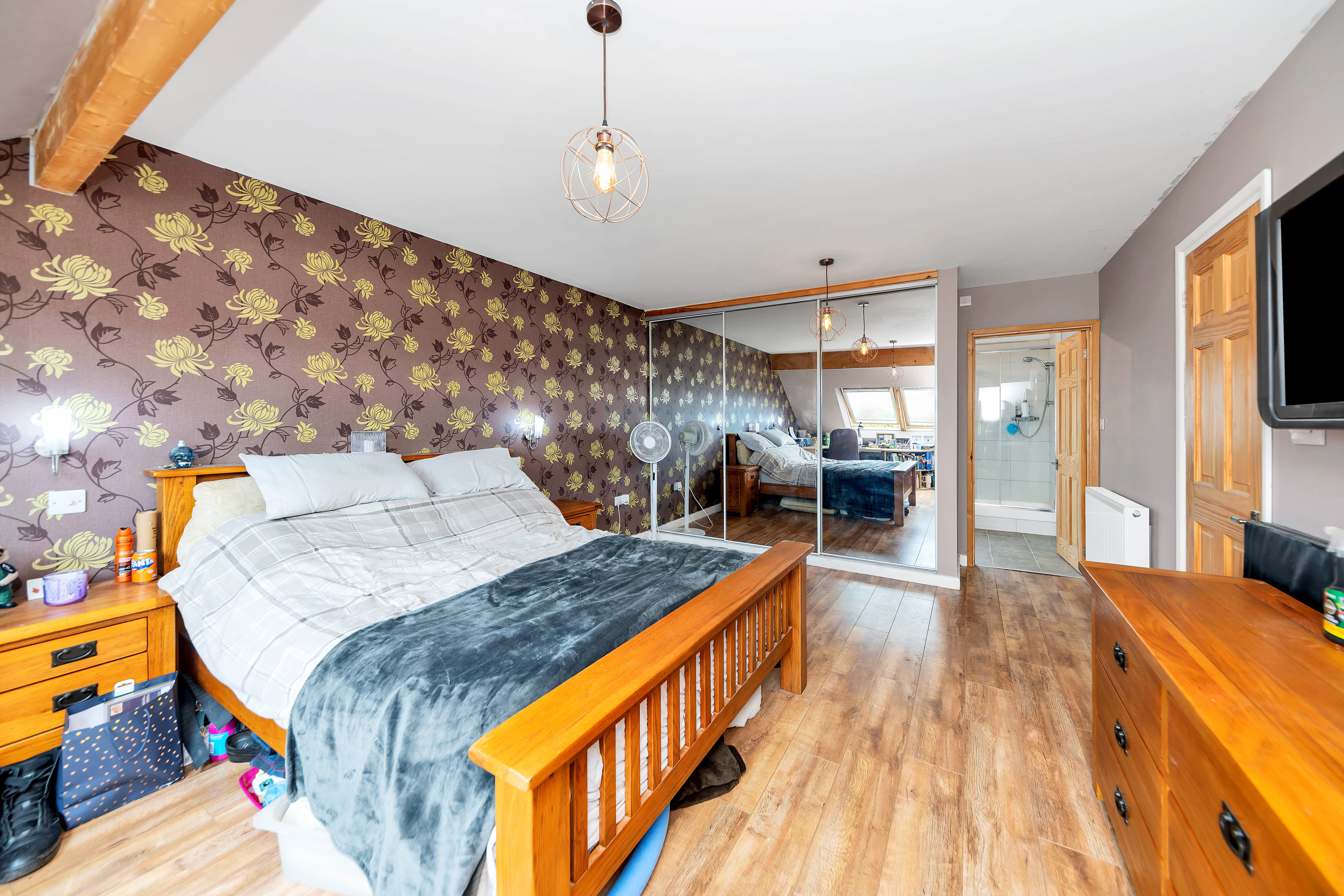 Upstairs to the first floor, this spacious home offers 4 further well-proportioned bedrooms, integrated storage, and a family bathroom, comprising a bath, WC and hand wash basin. The primary bedroom is particularly generous, with built-in wardrobes and a large en-suite, with a shower, WC and sink.