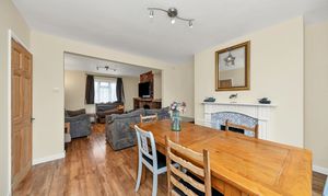 This generous property enjoys an attractive frontage, with borders of colourful plants and shrubs, plenty of space for pots, and side access to the rear. Upon stepping inside, the entrance hallway is bright and welcoming, with neutral decor, wood flooring, pendant lighting, and doors through to the downstairs living space.