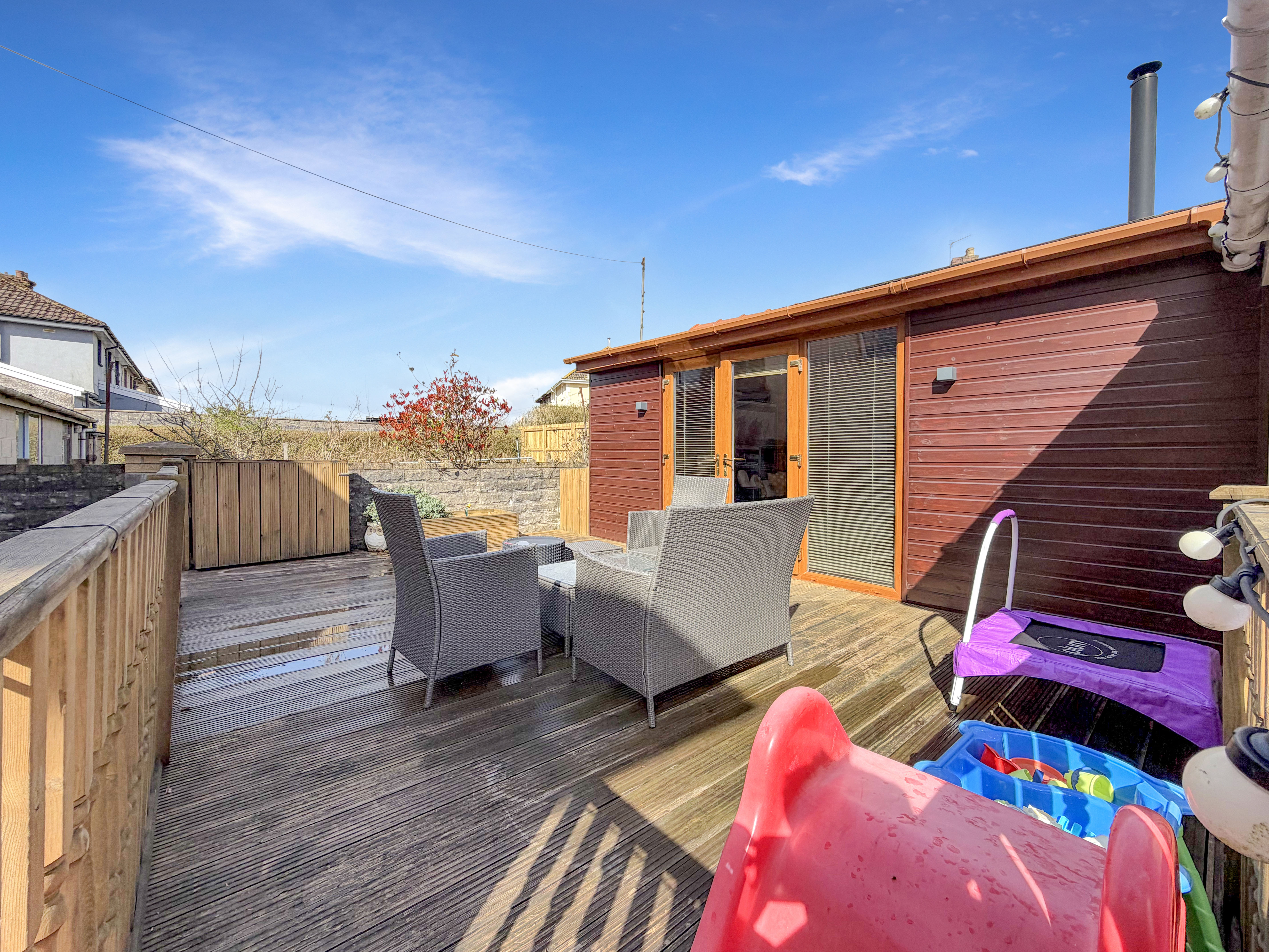 A thoughtfully designed summer room, also featuring a log burner, adds further versatility to the living space, offering a peaceful retreat for relaxing or hosting guests throughout the year. Upstairs, three generously sized bedrooms provide ample accommodation, each thoughtfully finished to a high standard and offering plenty of storage options.