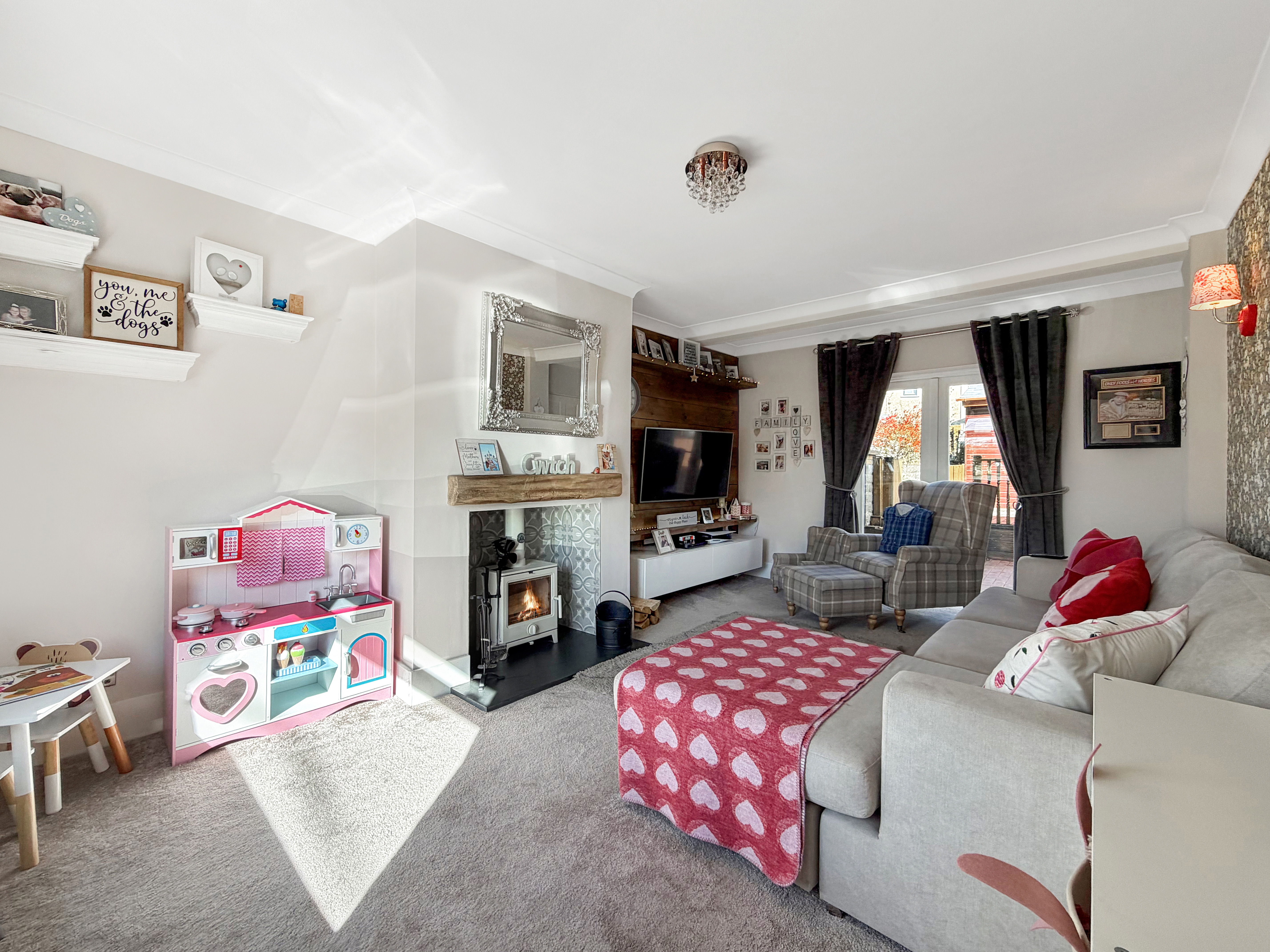 Upon entering, you are welcomed into a spacious hallway that leads to a stunning lounge, complete with a beautiful log burner (perfect for cosy evenings) and elegant double doors that provide a seamless connection to the adjoining areas.