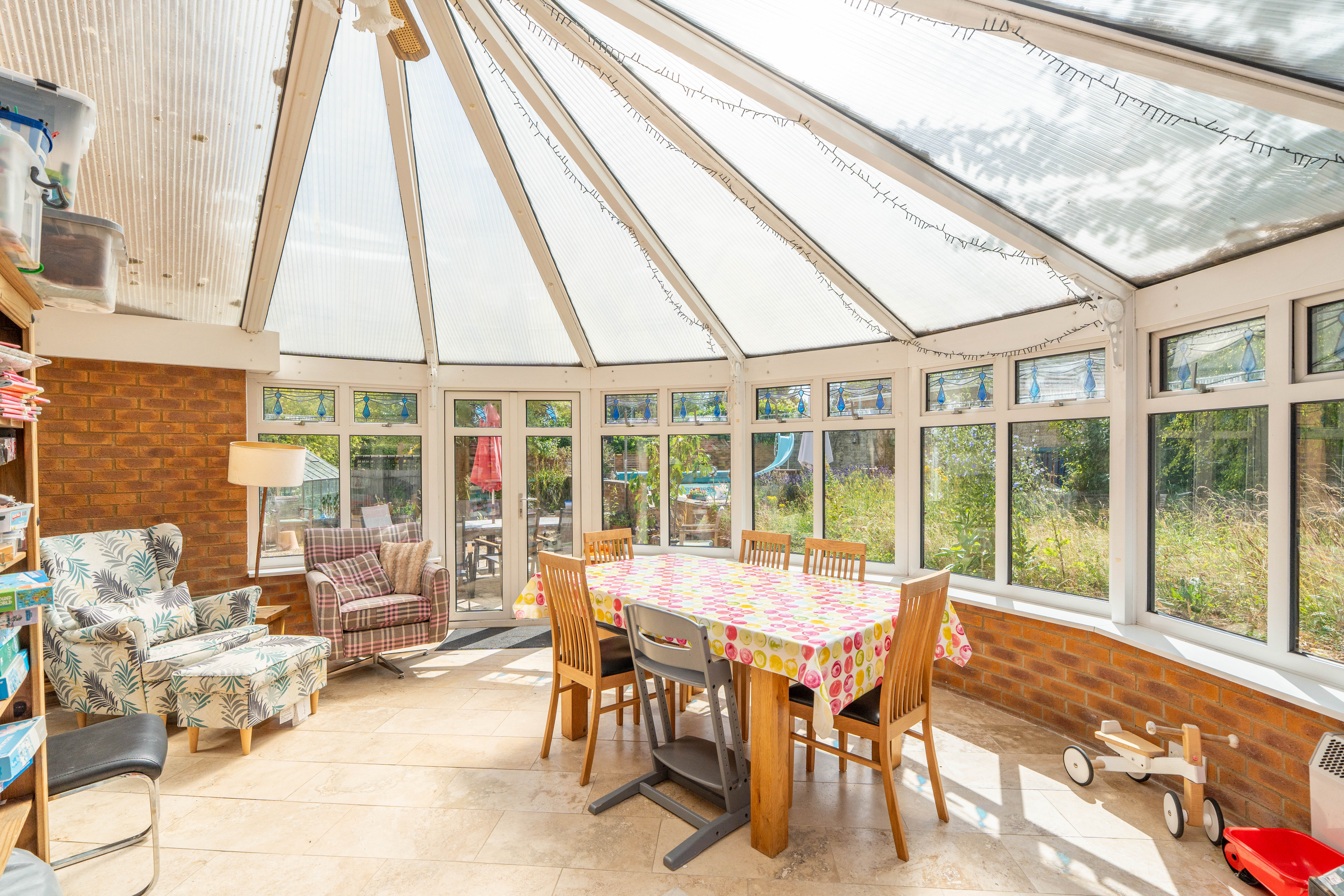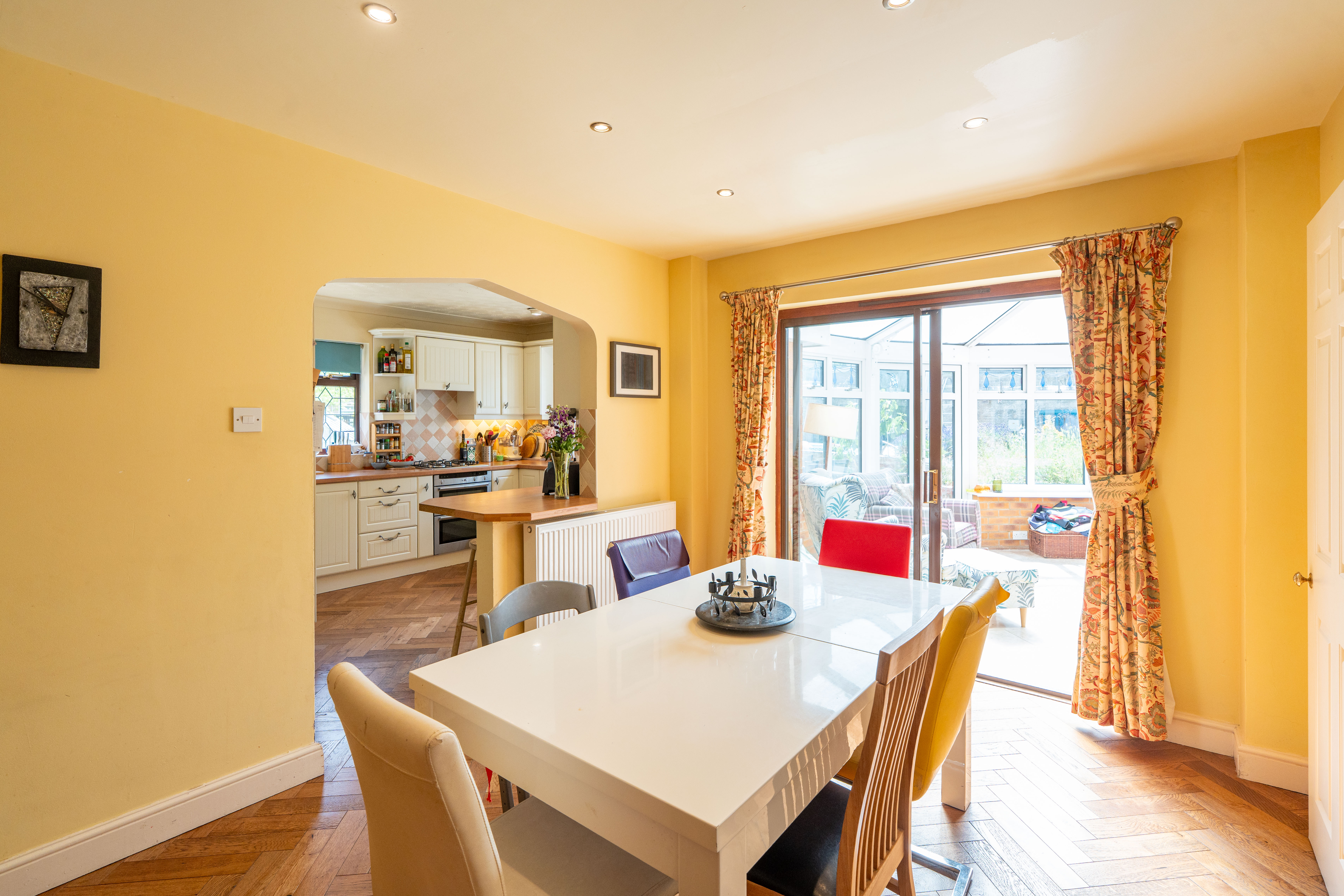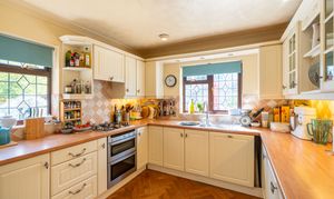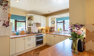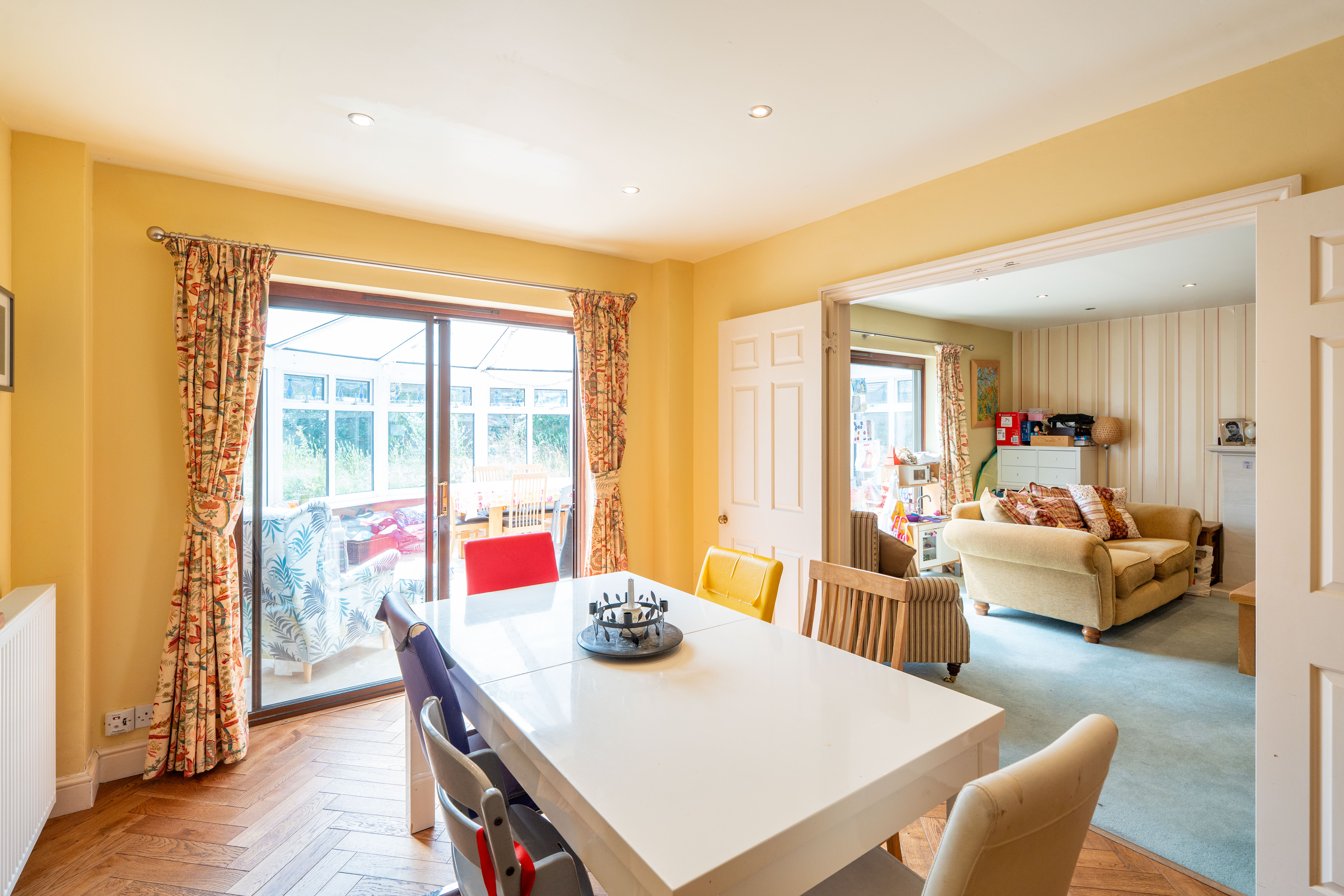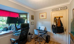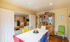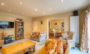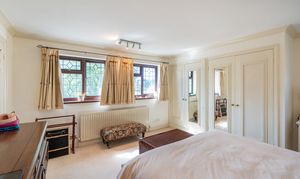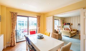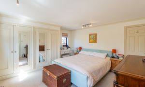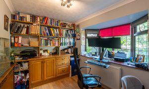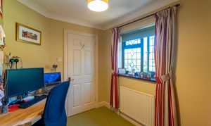 Natural light is in abundance throughout the house with the main rooms orientated south. Downstairs the living room and dining room are both linked through glazed double doors into a truly ample south-facing conservatory with underfloor heating. The double aspect kitchen is adjacent with attractive solid oak herringbone flooring which follows into the dining room and includes fitted appliances. In addition downstairs, the hallway leads off to both a further reception room, currently used as a study, plus both a cloak room and a utility room. Planning permission ref: 24/02488/F was granted 16/09/24 to replace the conservatory with a single storey extension with bifold doors to the garden which would further enhance the ground floor space.