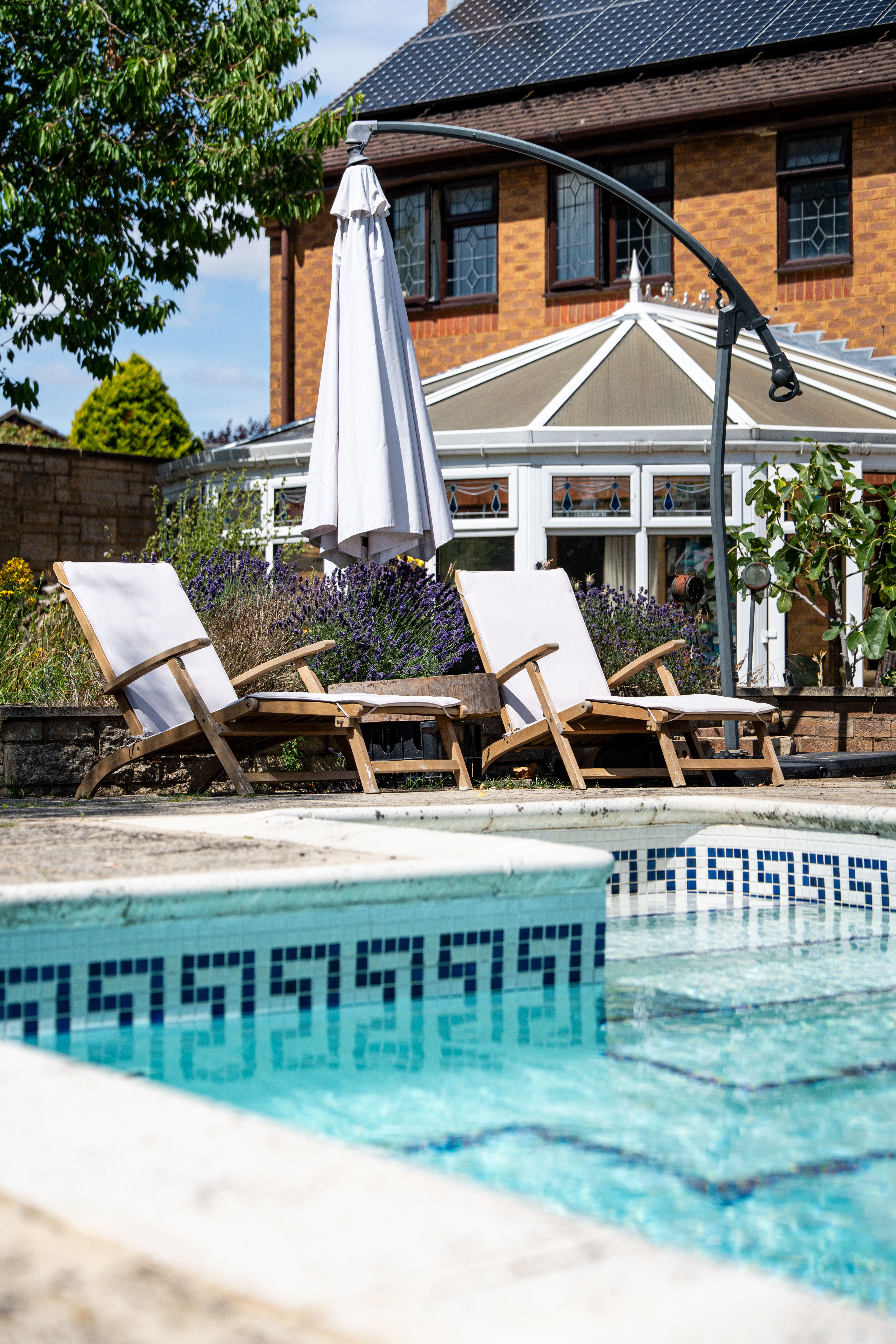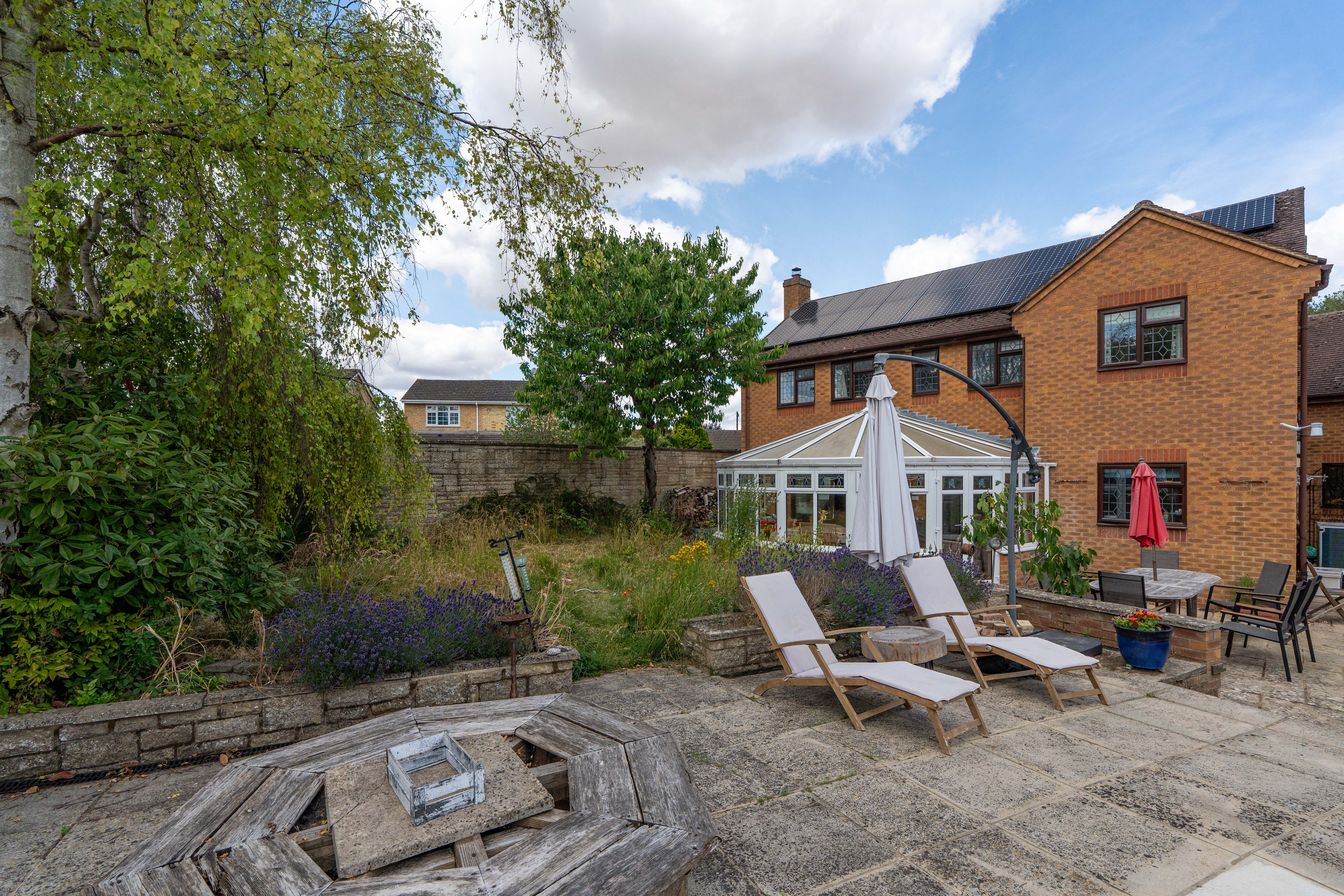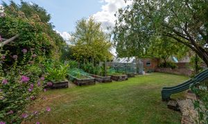 Stepping outside, the magnificent garden is a wonderful retreat offering a south-facing heated swimming pool enclosed by a brick wall, perfect for unwinding in a peaceful setting, and not overlooked at all. There is a large patio area with a pond, several lawn areas, various vegetable growing planters and a small orchard, at set within a third of an acre. In the orchard there is a wonderful summer house.