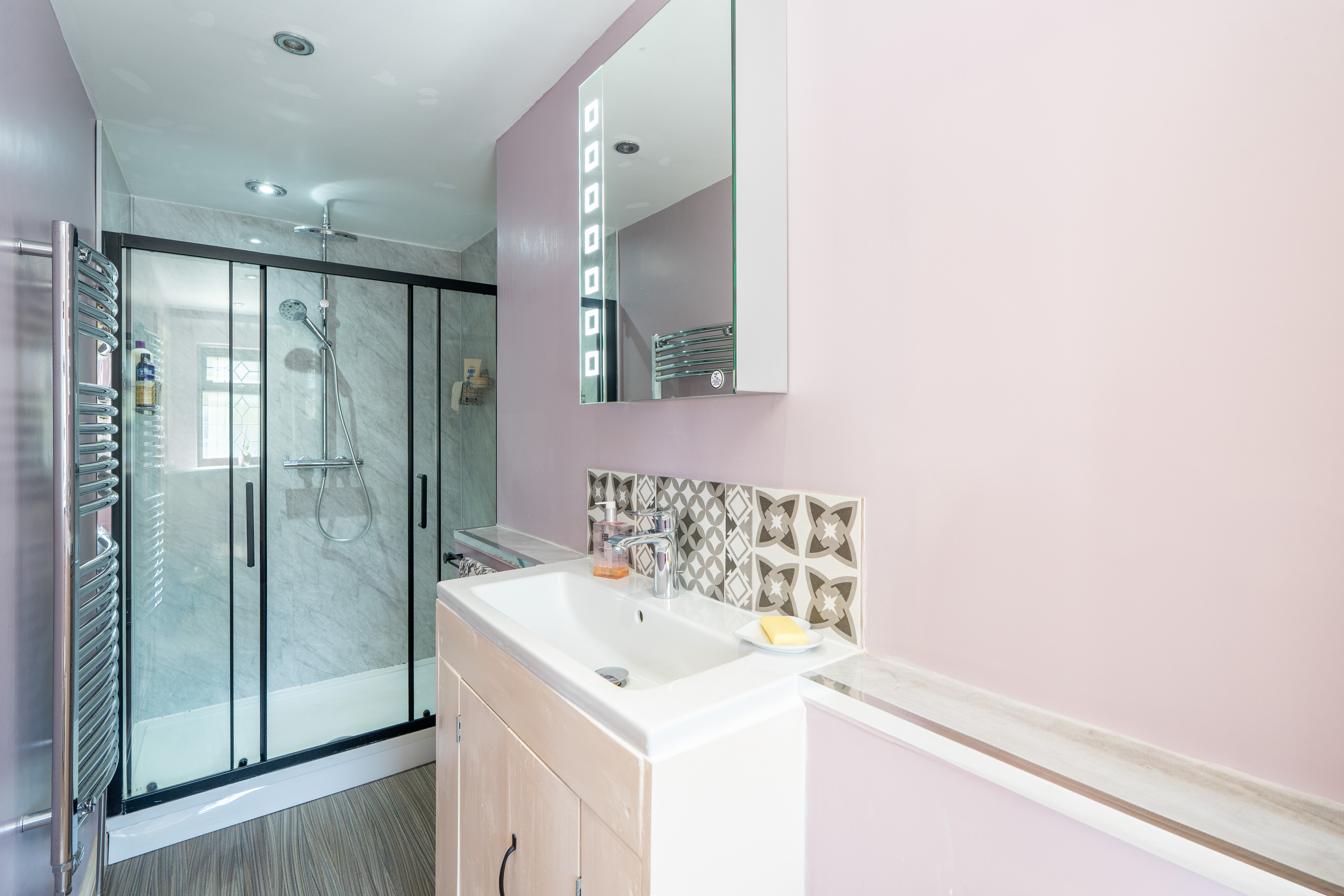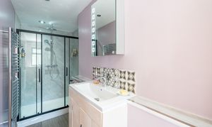 Upstairs the four bedrooms are all good sizes, three are double aspect providing plenty of light, and all but one are equipped with generous wardrobes. The main bedroom comes with an en-suite shower room and there is refitted stylish bathroom which comes with a freestanding bath and separate shower.
