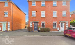 Sitting within one of Wymondham’s more popular developments, this SEMI-DETACHED TOWNHOUSE has been incredibly well maintained making for a welcoming feel throughout with VERSATILE living spaces set across THREE LEVELS where the total floor space measures approximately 1072 Sq. Ft (stms) with interchangeability of space being a key order throughout the home. The ground floor gives way to an open KITCHEN and BREAKFAST ROOM with a DINING ROOM on the ground floor to the rear, formerly functioning as a ground floor bedroom for MULTI-GENERATIONAL living while a similarly sized SITTING ROOM sits upon the first floor just above. In total, FOUR BEDROOMS come across two floors with the main bedroom boasting an EN-SUITE SHOWER ROOM while a FAMILY BATHROOM comes with the three bedrooms on the second floor. the rear garden is FULLY ENCLOSED and opens through a secure gate to the rear where ALLOCATED OFF ROAD PARKING is on offer in front of the brick GARAGE.