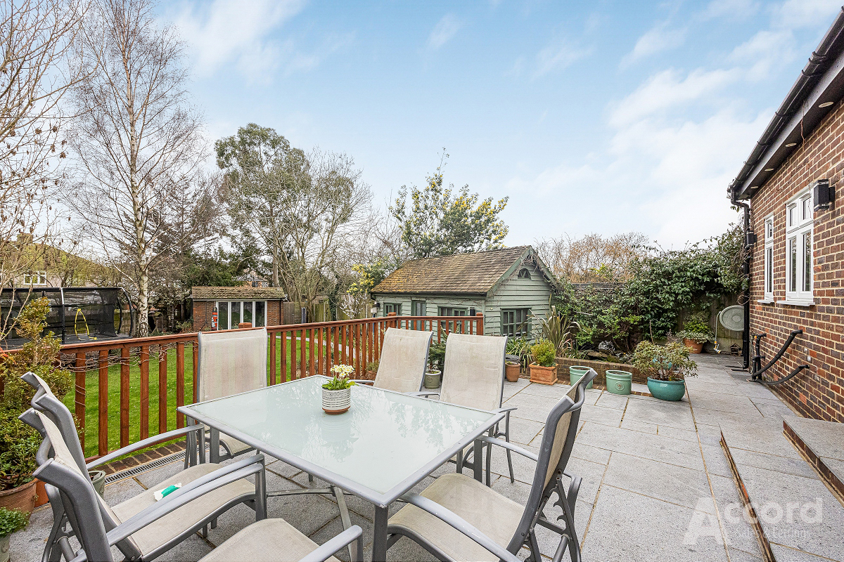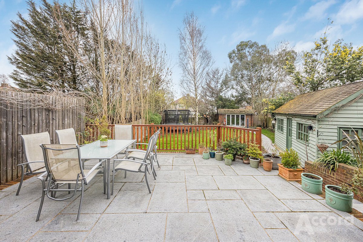 Outside, the rear garden is a real highlight. It is south facing, unoverlooked and offers a good balance of lawn, paved patio seating space and planted borders. The two outbuildings provide excellent extra space and could suit a home office, gym, studio, storage or hobbies room, depending on your needs. To the front, there is a large paved driveway providing off street parking for multiple vehicles.