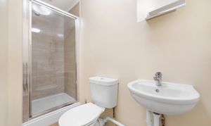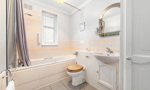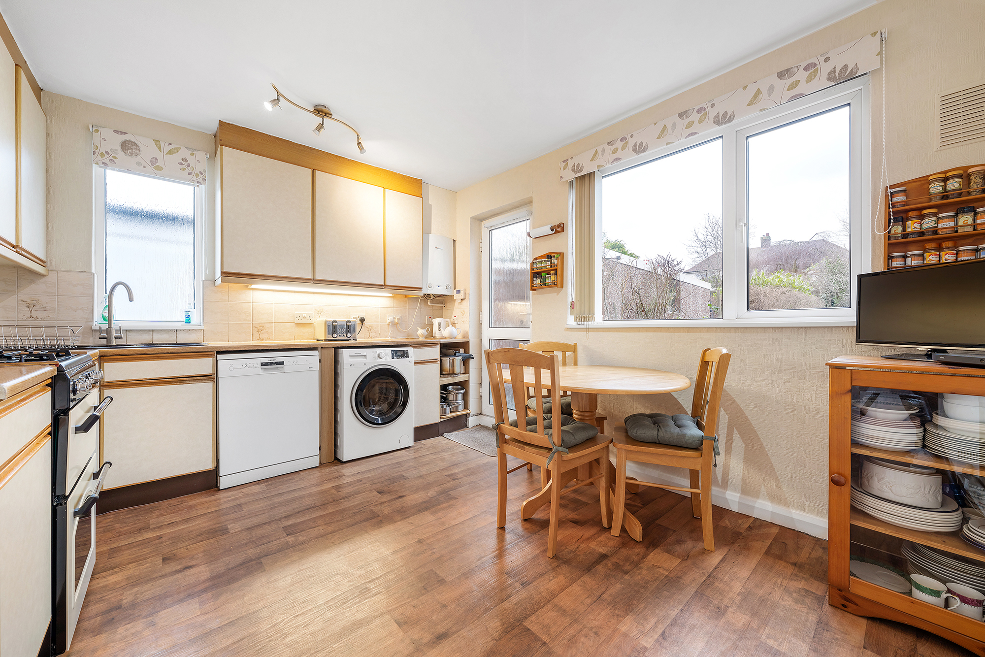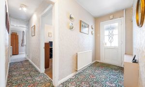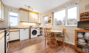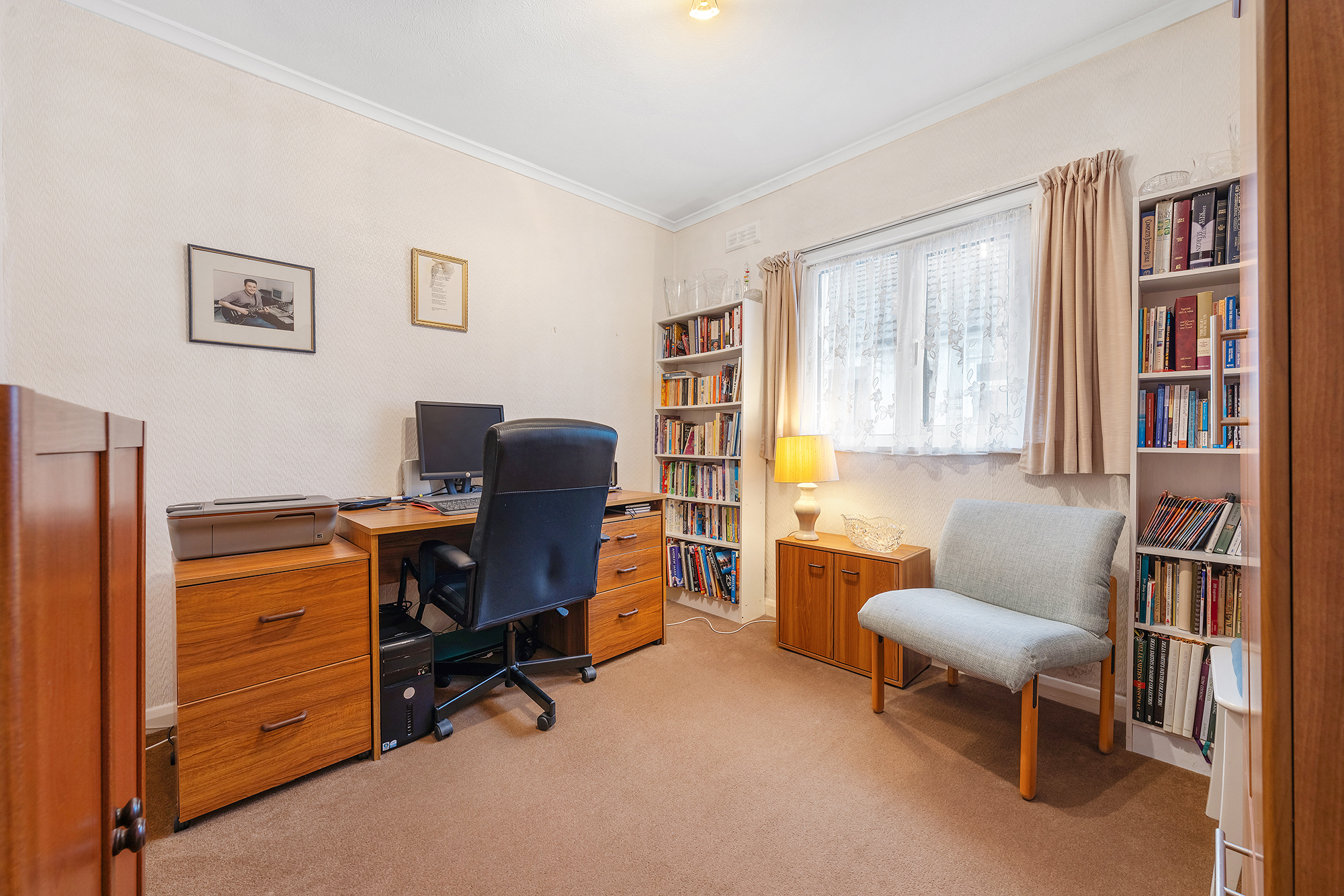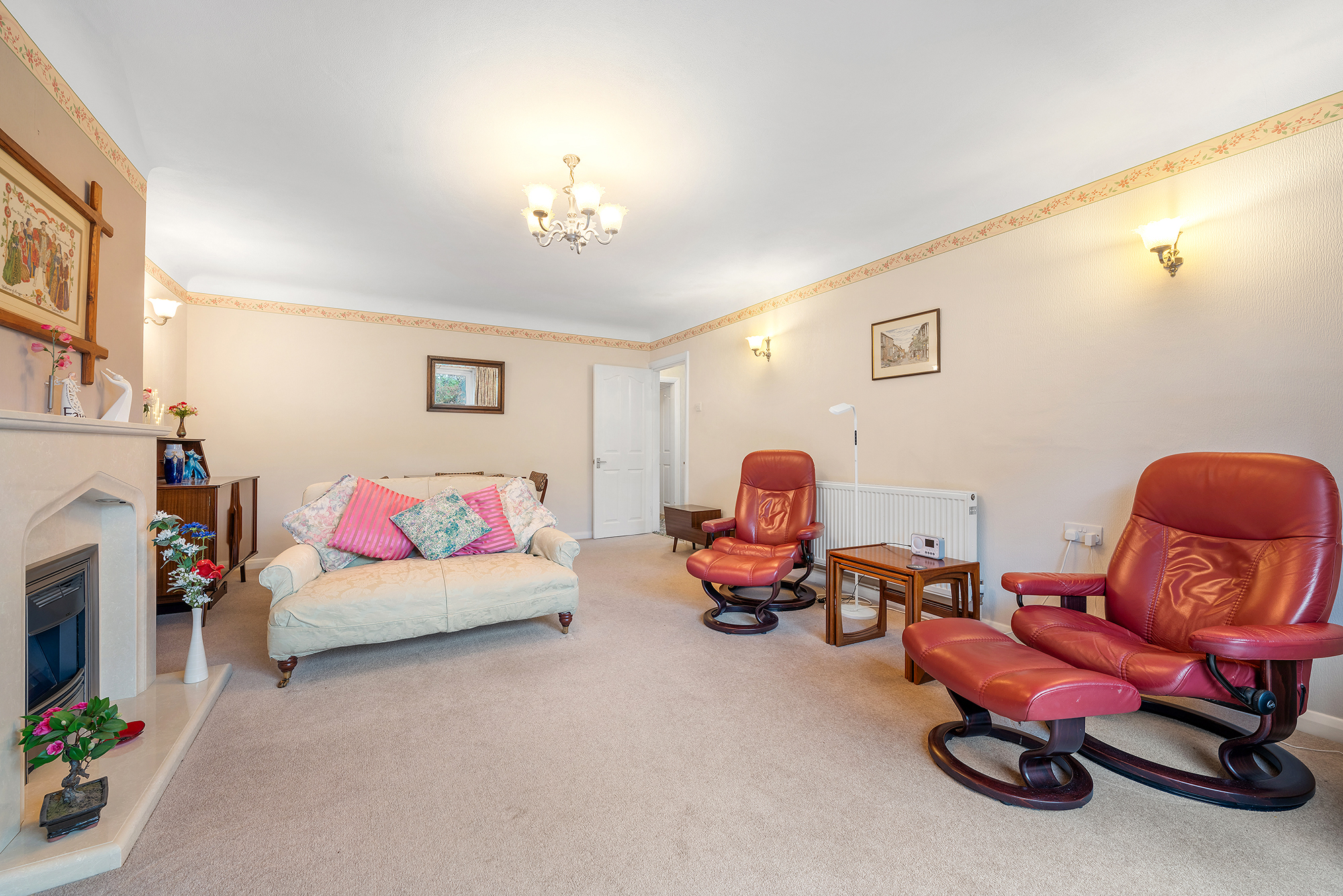 The bungalow features three well proportioned bedrooms, with the principal bedroom benefiting from generous built-in wardrobes, and the second double bedroom with ensuite shower room, while the third bedroom provides excellent versatility for use as guest bedroom, a home office, or a hobby space. The family bathroom comprises a fitted white bathroom suite, featuring a shower over the bath and vanity storage unit ensuring comfort and convenience.