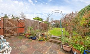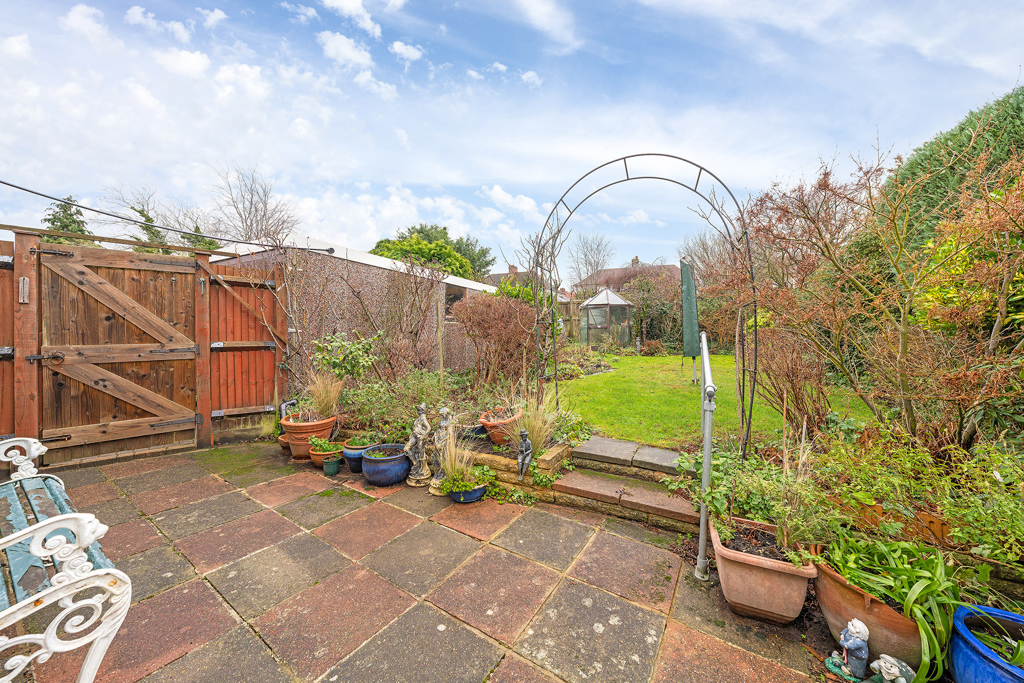 The easy maintenance, south facing rear garden, mainly laid to lawn, is well stocked with mature planting and has a paved patio, with garage to the side.