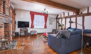 Upstairs, the residential quarters offer a tranquil escape and modern comfort without losing the old-world charm. Spread over two floors, the apartment welcomes you with a stunning first-floor lounge, where heritage beams and exposed brickwork meet elegant updates like parquet wood flooring and a toasty multi-fuel stove. Adjoining the lounge is a large kitchen and dining room, fully equipped for contemporary living (modern appliances, ample storage) yet enhanced by period details like sash windows and warm wood textures.