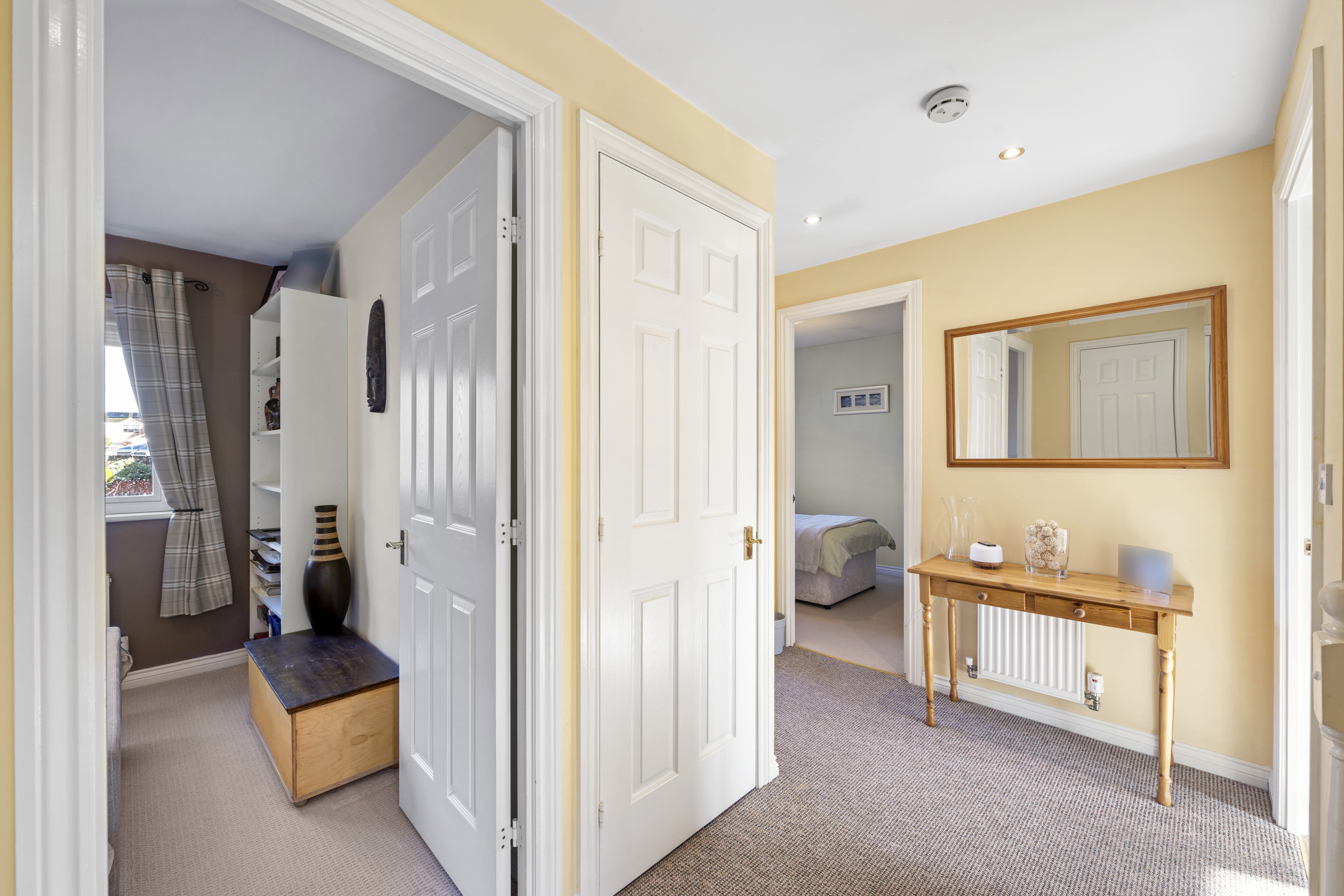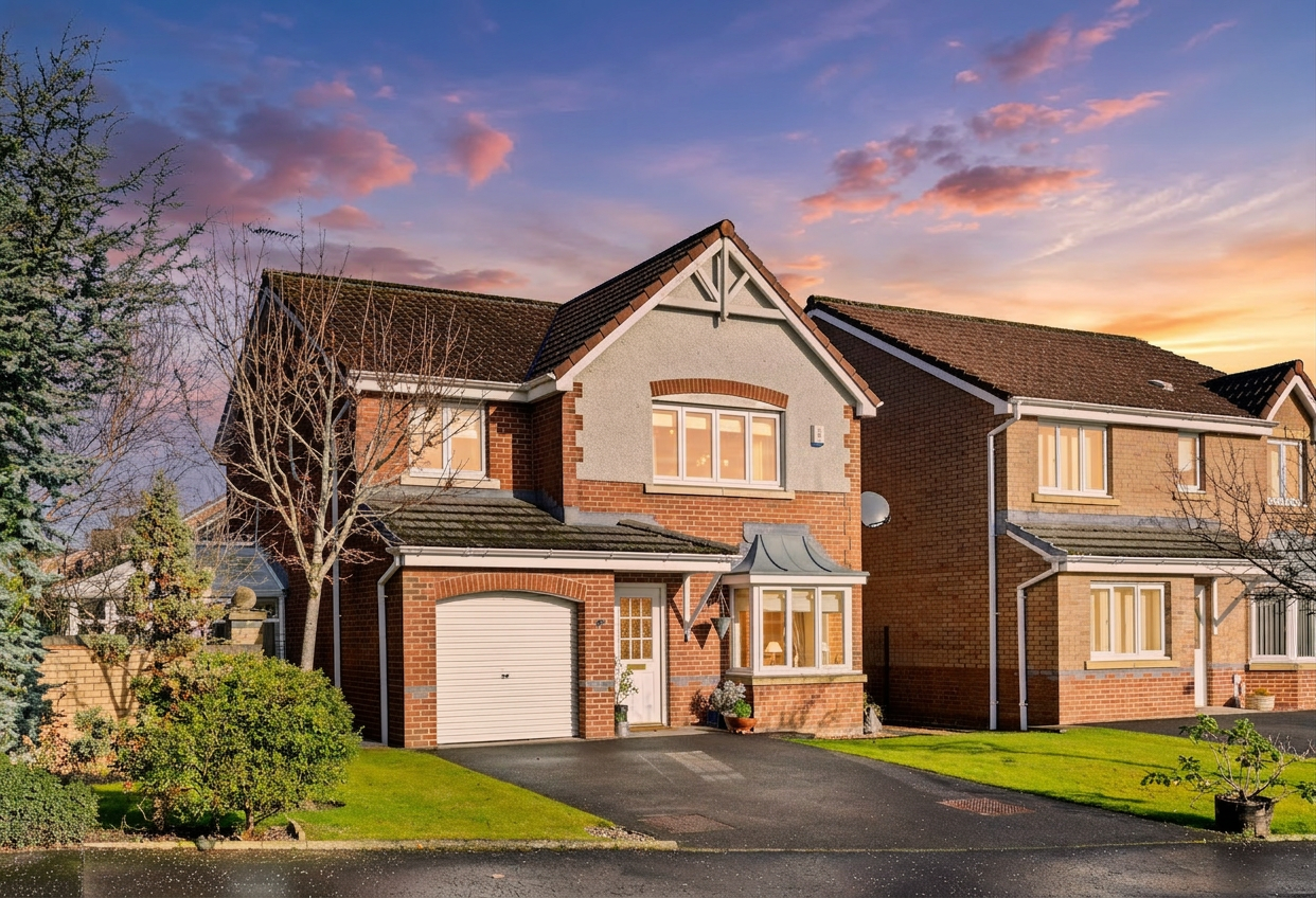 The principal bedroom is a true retreat, benefiting from a private en-suite and generous built in storage, while three further double bedrooms offer comfortable accommodation for family members or guests. Throughout the home, a variety of storage options ensure a clutter free environment and practical organisation. Additional features include a garage and a double driveway, providing secure off road parking for multiple vehicles.