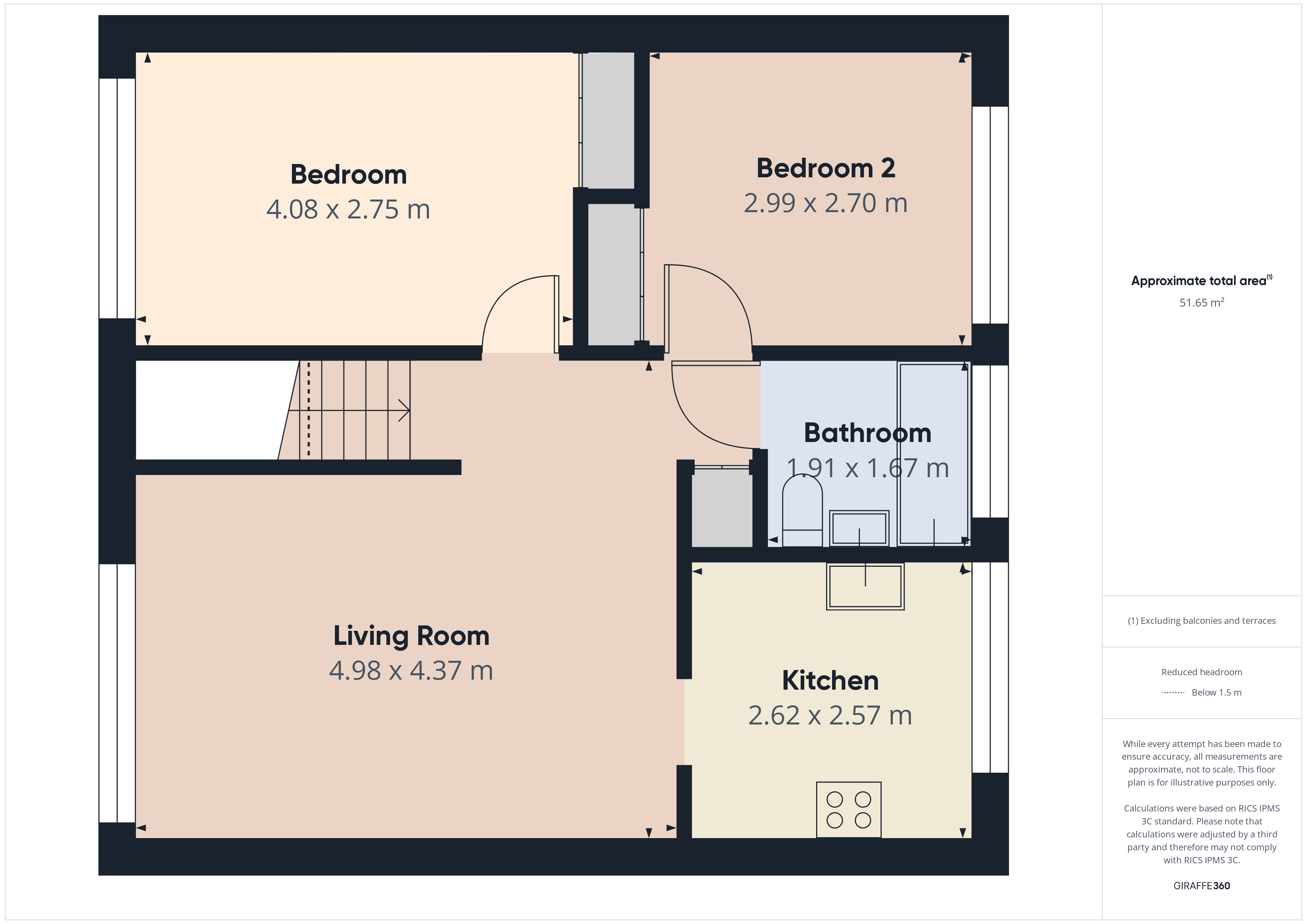 Step inside to find a private staircase leading up to the heart of the home—a bright and airy open-plan living and dining space. Large enough for both a comfortable sofa and a bistro table, this is the perfect social hub for unwinding at the end of the day, catching up with friends over dinner, or enjoying a relaxed weekend with a coffee and your favourite playlist.