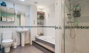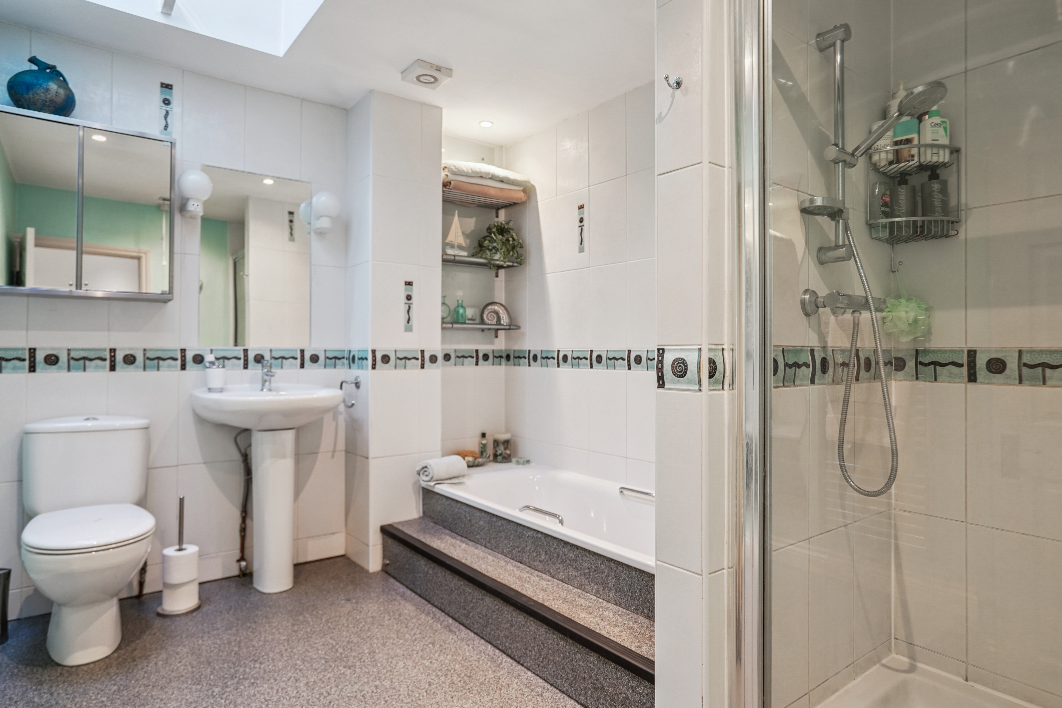 There are three further bedrooms and a family bathroom with a sunken bath and separate shower to this side of the house, and a spacious guest room with en suite bathroom, and an impressively large double-aspect multi functional room to the other.