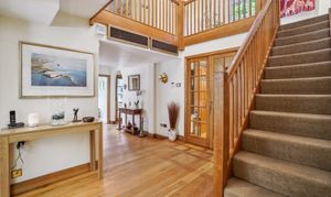 Stairs rise from the entrance hall to a striking galleried landing that sets the tone upstairs and gives access to the well-proportioned bedrooms.