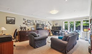The double-aspect sitting room is a true highlight – a refined yet comfortable space with a feature working stone fireplace and French doors opening directly onto the garden.