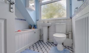 To the first floor there is a landing with doors off to two generous double bedrooms, both with large picture windows bringing in plenty of natural light and there is a well proportioned third single bedroom. Completing the accommodation is a tiled family bathroom comprising a panelled bath with shower over, low flush WC and a pedestal wash hand basin.