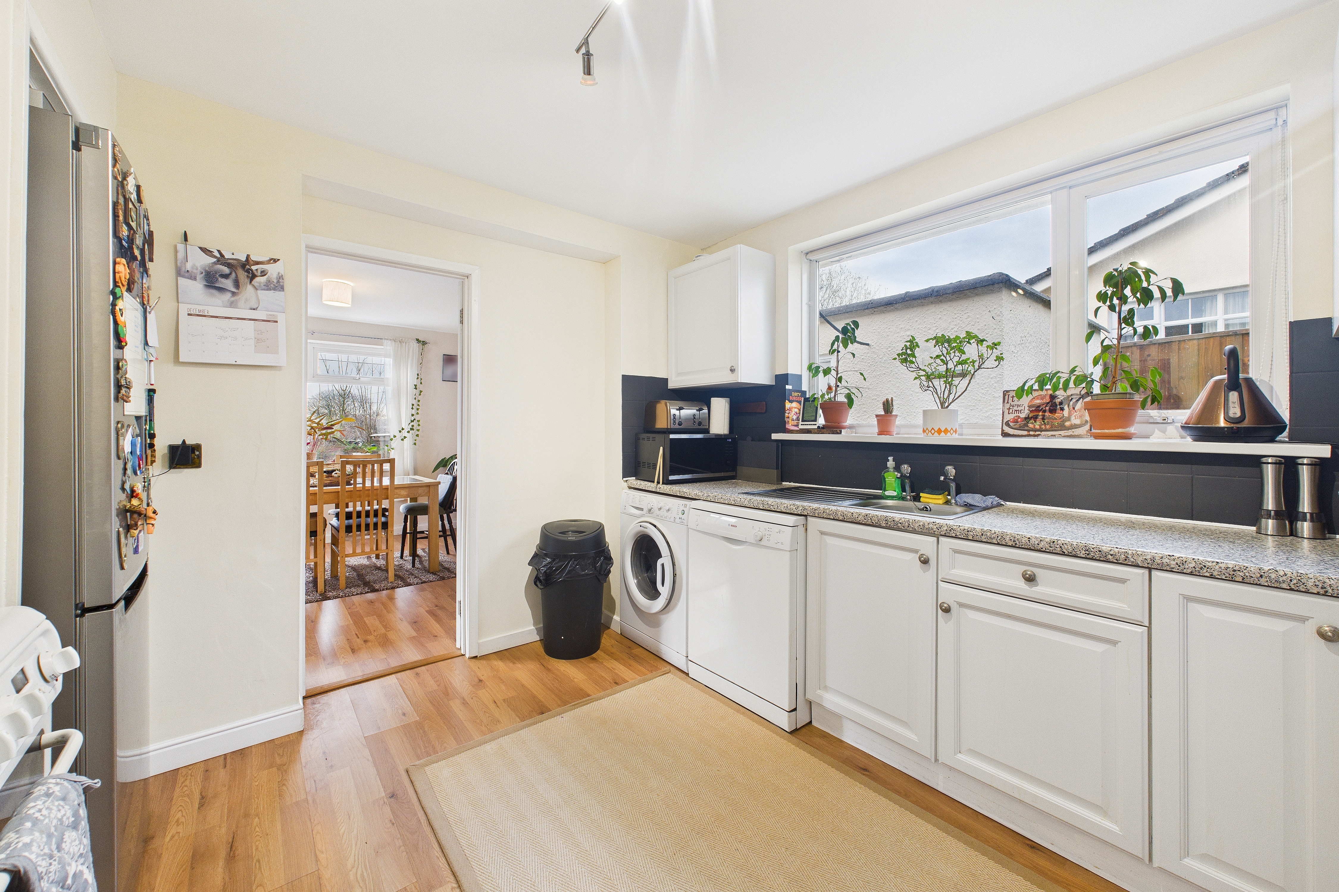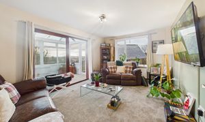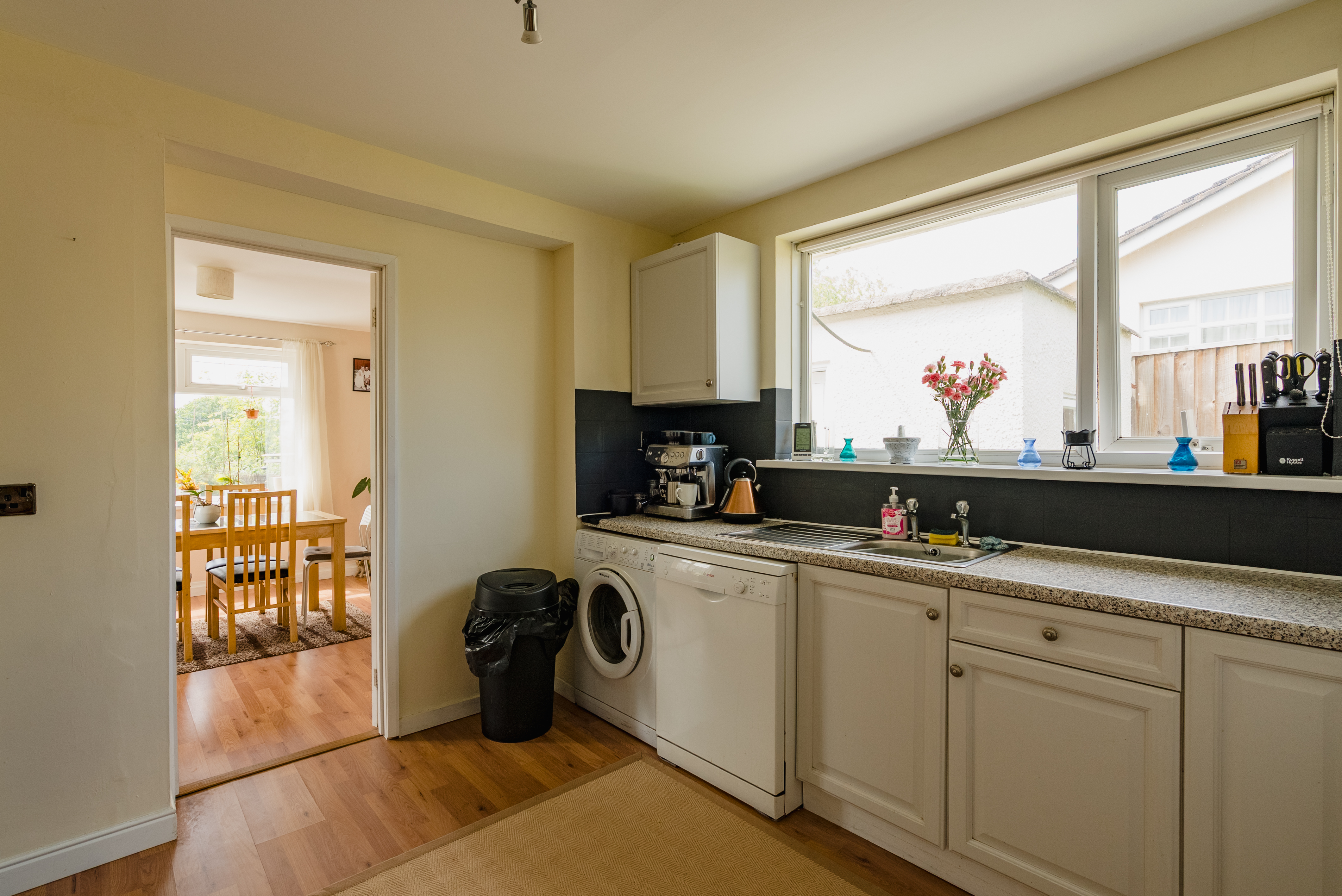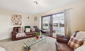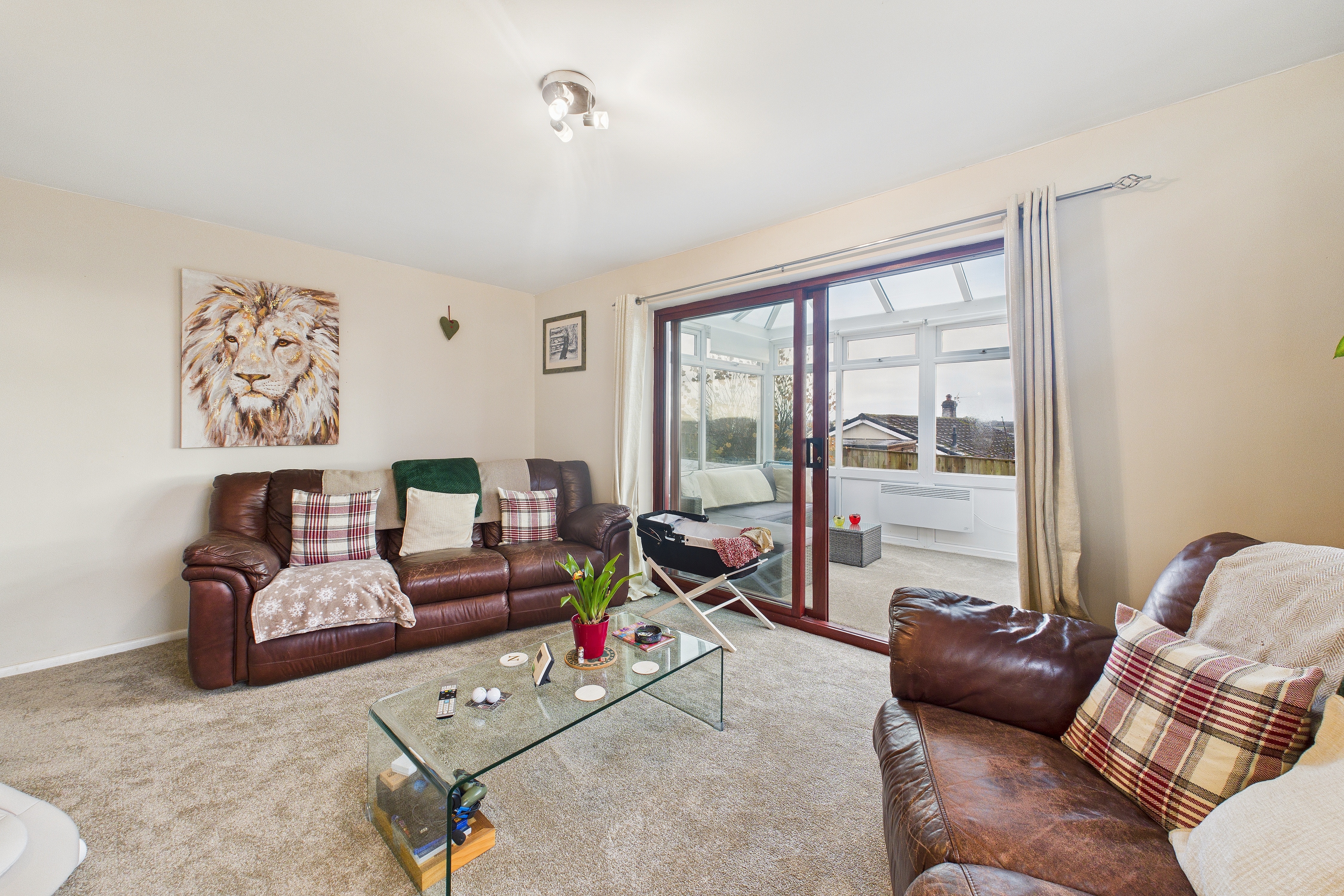 The layout offers a useful front porch and from the hallway, two double bedrooms are found, served by the family bathroom with its white suite. The living room opens into the conservatory with south facing views over the garden and beyond. The kitchen has a range of storage and worktop space and is at the rear of the home. The third bedroom (currently used as a dining room) over looks the gardens too and a set of doors out would be a lovely addition should a new owner wish to do so. With the extra space added by the conservatory and third bedroom, it’s a great sized bungalow with some flexibility on how the rooms can be used.