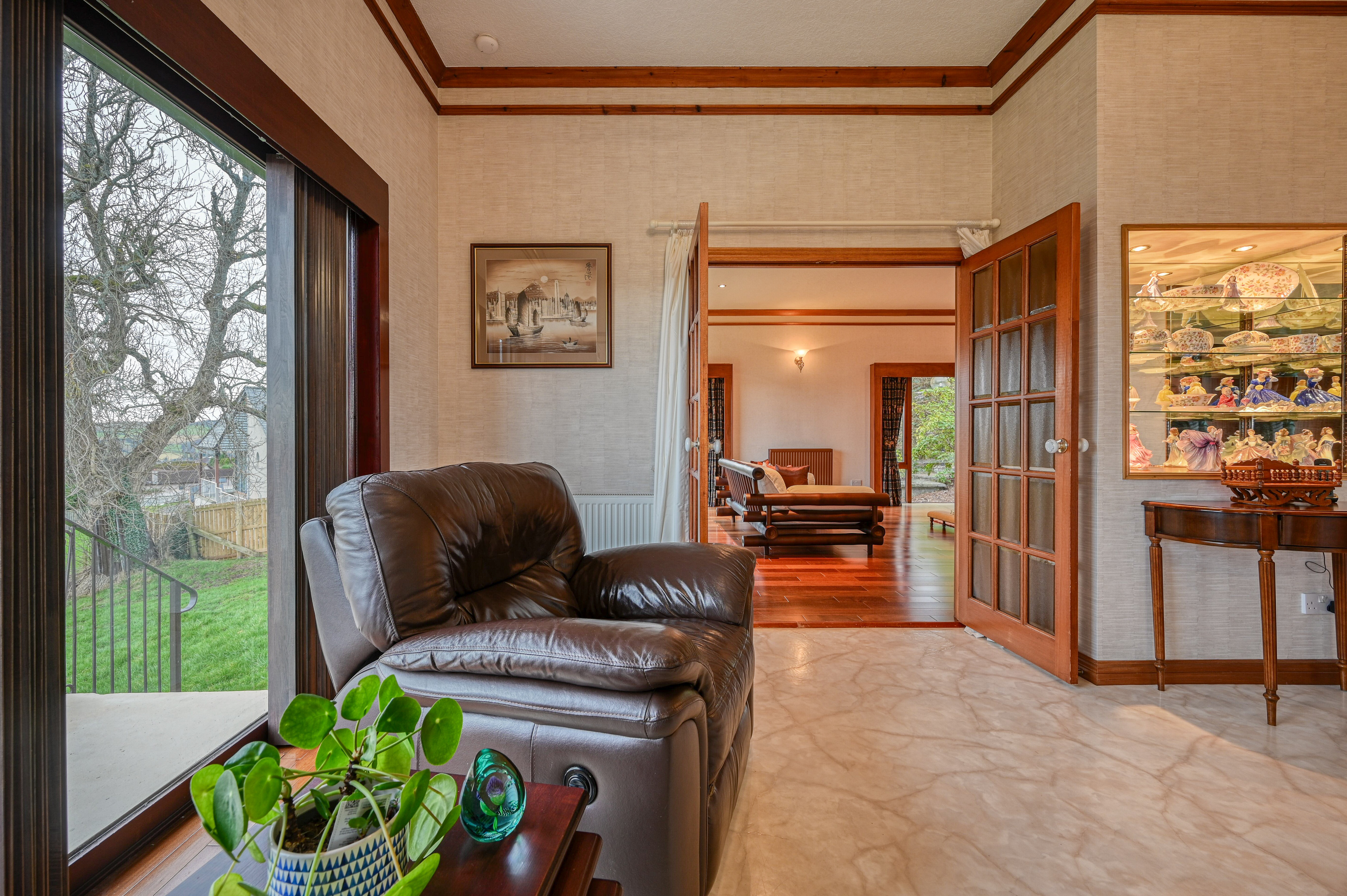 Externally, the property continues to impress with a detached garage, ample off-street parking, and a generous private rear garden — outdoor space of this scale is rarely found in such a desirable location. The open outlook enhances the sense of space and privacy, while the garden offers superb potential for outdoor living, entertaining, or simply enjoying the setting.