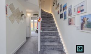 To the first floor, the property continues to impress with three well-proportioned bedrooms. The principal bedroom benefits from its own en-suite, providing a private and practical addition. The remaining bedrooms are versatile and can be utilised as children’s rooms, guest accommodation, or a home office. A modern family bathroom serves the additional bedrooms, while the central landing provides access to all rooms.
