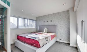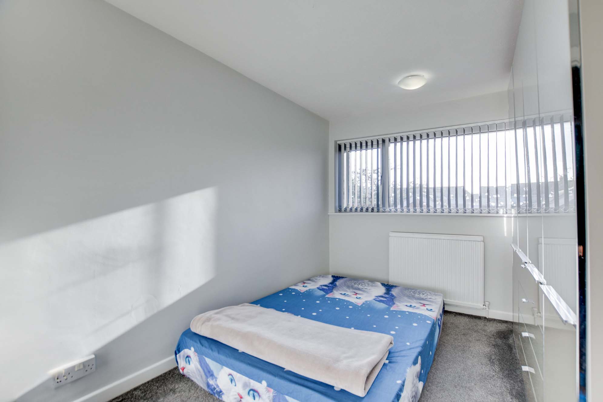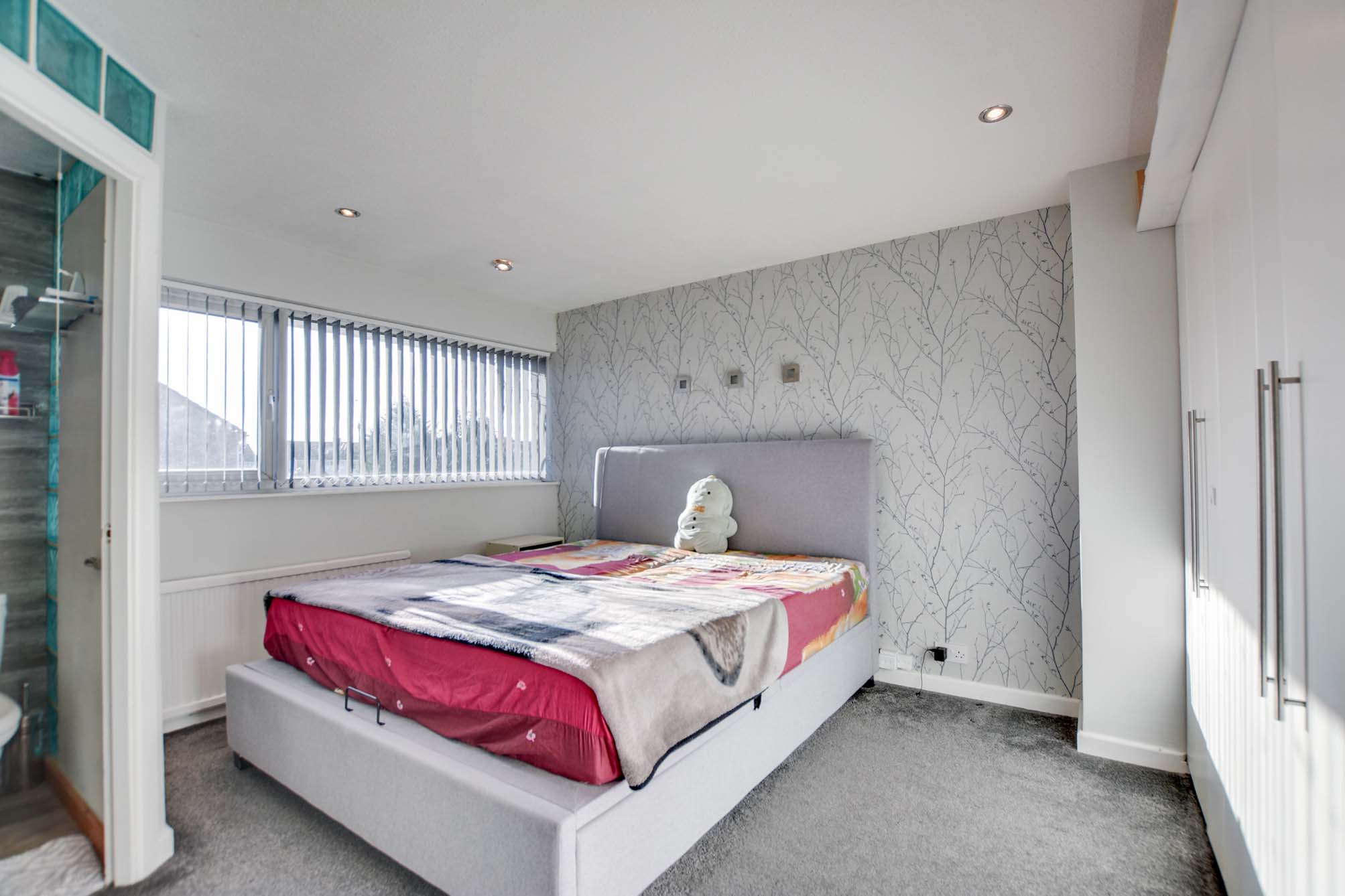 A well-sized double bedroom with a double glazed window to the front elevation, built-in wardrobes, inset ceiling spotlights and a radiator.