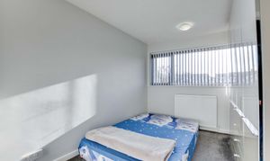 A ground floor bedroom with a double glazed window to the side elevation and a radiator.