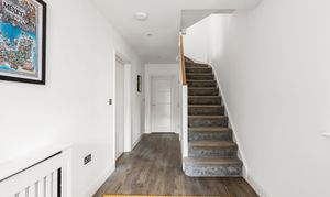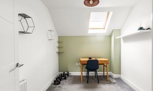 The ground floor features a spacious entrance hall leading to an integral garage with a utility room area at the back. A versatile fourth bedroom, currently used as a home office, enjoys its own ensuite shower room, providing the perfect space for working from home or hosting guests.