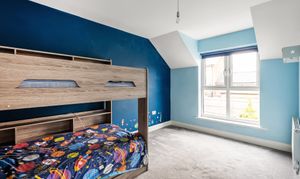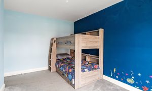 On the second floor, three generously proportioned bedrooms await, including the principal suite with a walk-in dressing room and ensuite shower room. A family bathroom serves the remaining bedrooms.