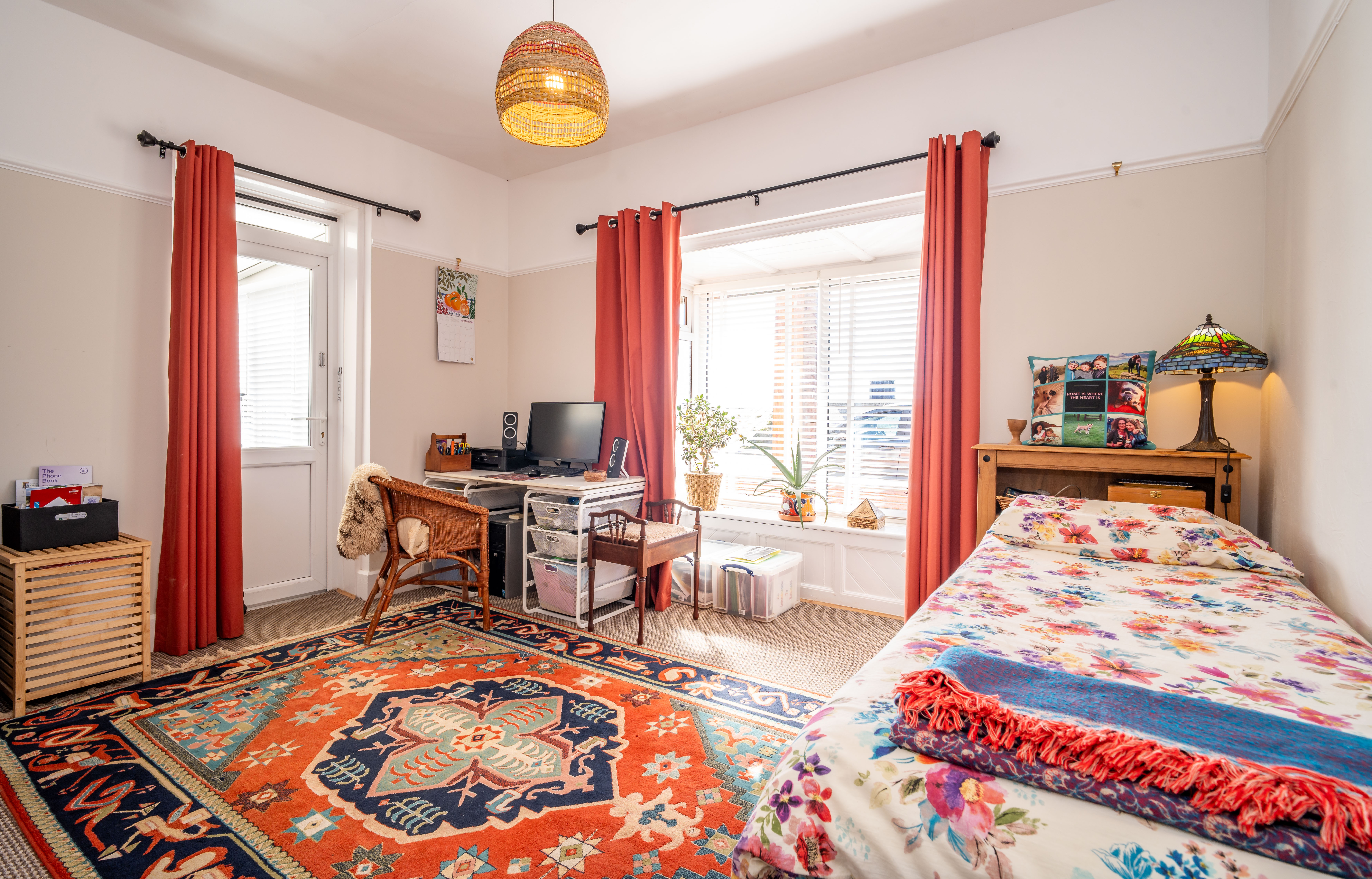 A comfortable reception room with side aspect, double-glazed window, picture rail, and radiator.