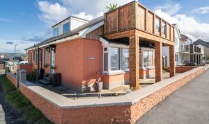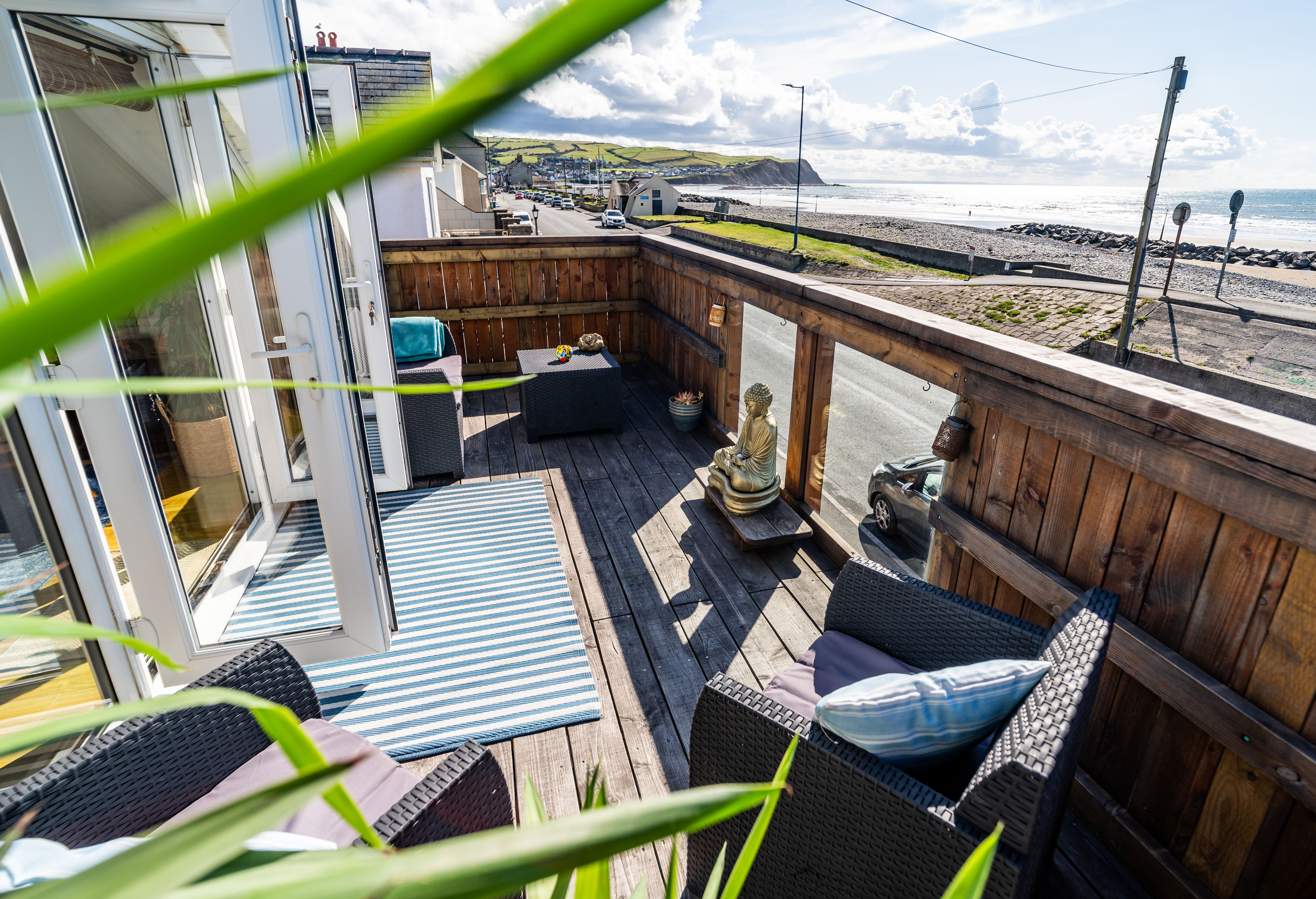 Externally, the property includes a detached garage to the rear with additional parking, enclosed gardens, and the superb balcony terrace to the front—ensuring the coastal outlook can be enjoyed both indoors and out.