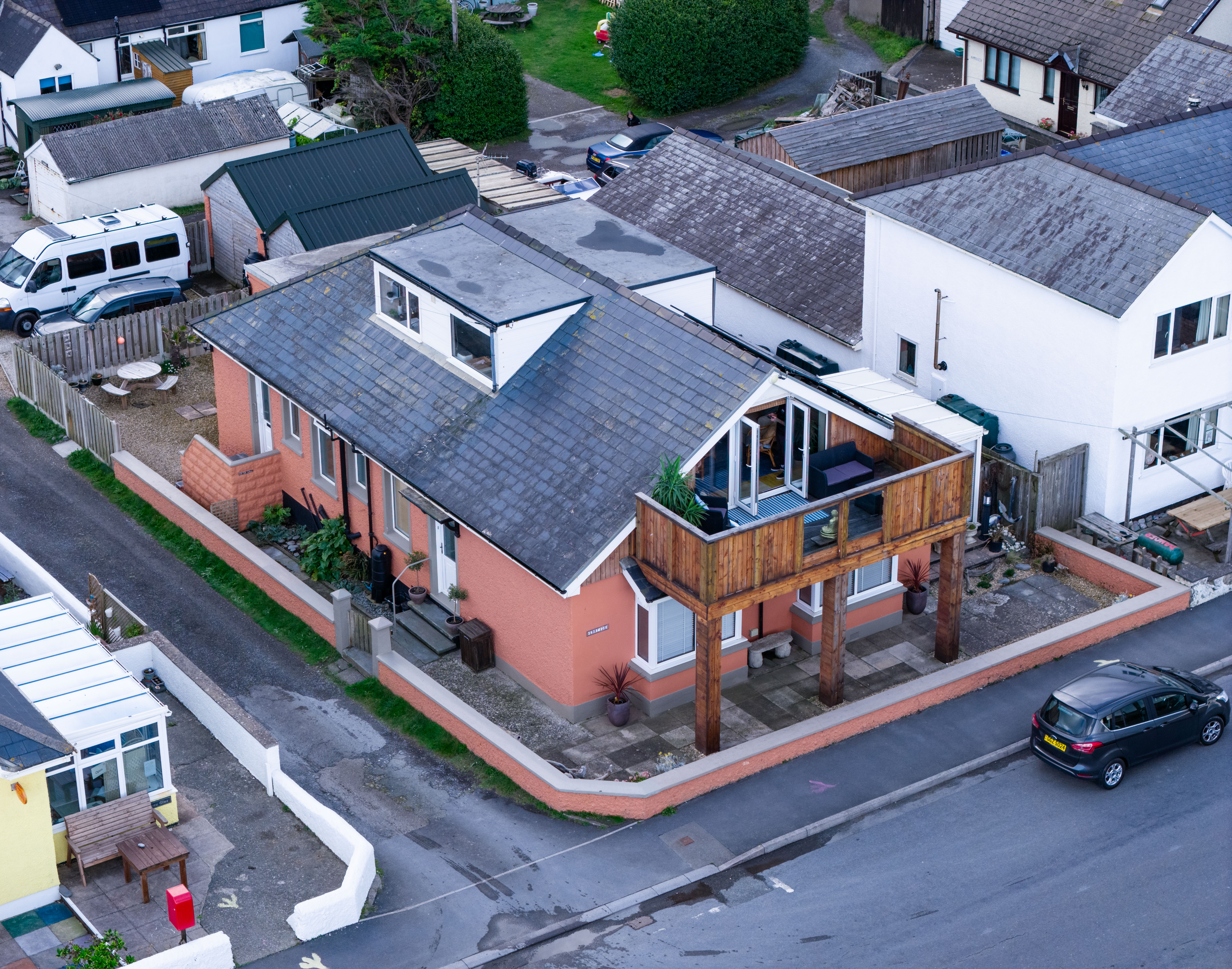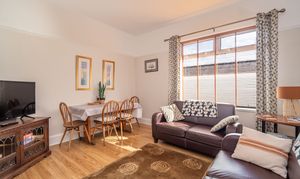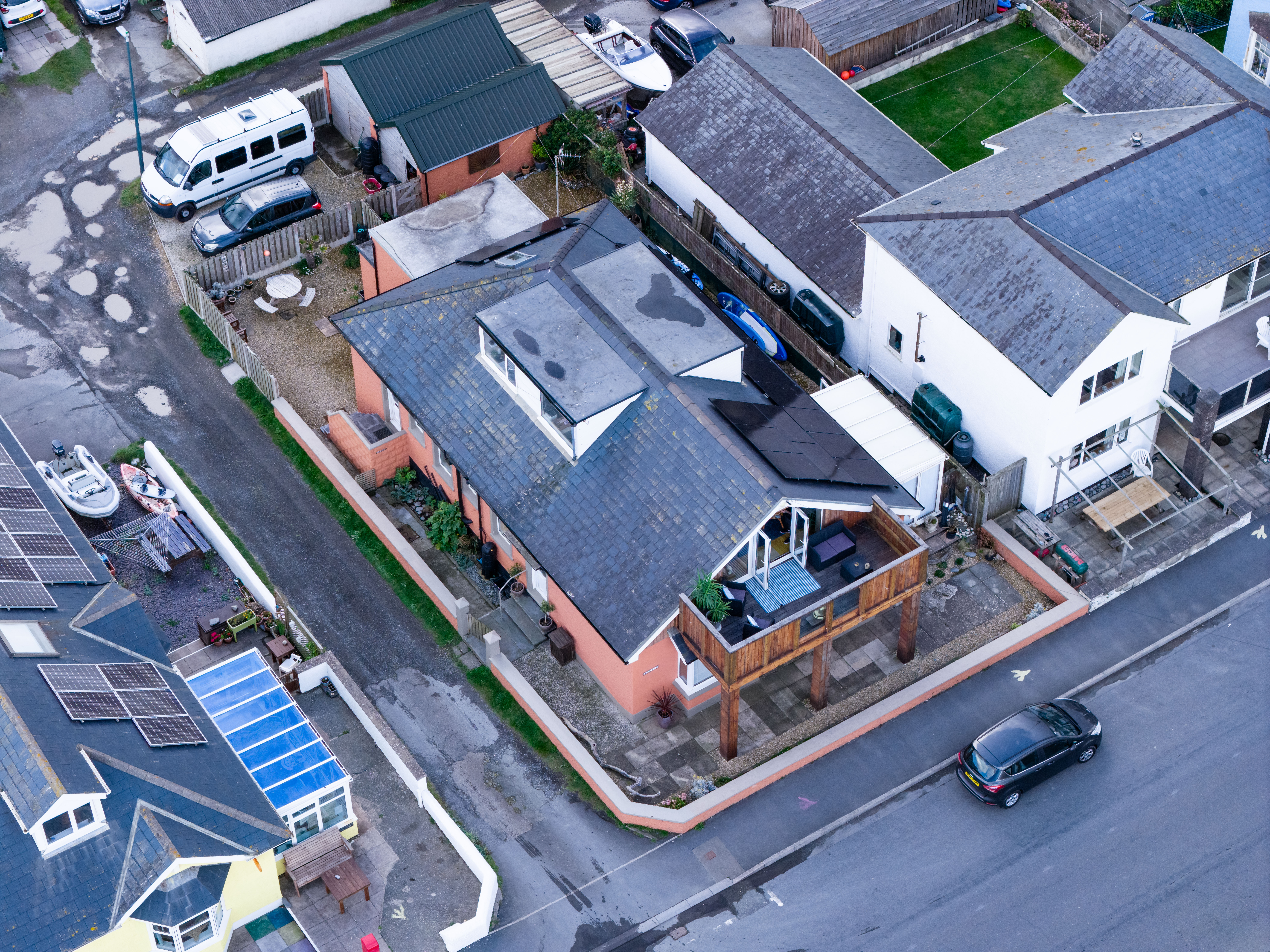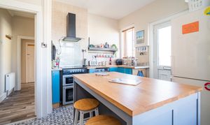 To the rear of the property is a detached building of double garage proportions, providing secure storage. It is complemented by additional hardstanding for further parking – a valuable asset in such a central coastal location.