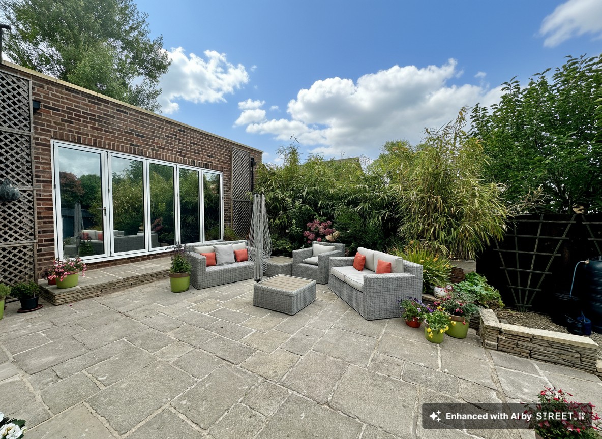 Externally, the rear and side south-facing gardens offer a private sunken lawn, patio areas, and well-established planting. A fully insulated garden office/log cabin with power, heating, A/C, and full connectivity creates the ideal space for remote work or creative pursuits.