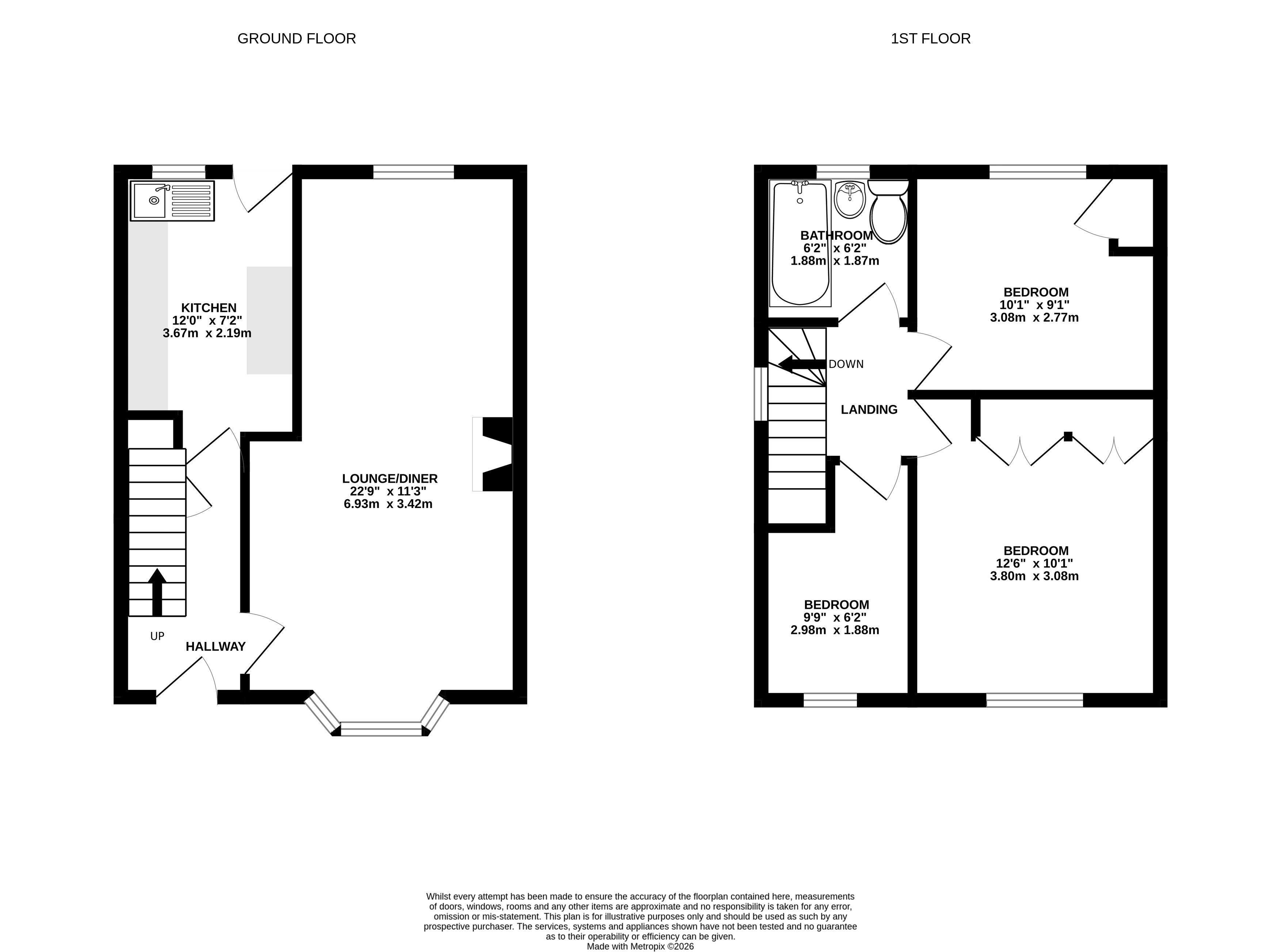 On the first floor are three bedrooms and the family bathroom. The property offers two double bedrooms and a single bedroom, providing flexible accommodation for families or those needing additional space for a home office. The family bathroom completes the first-floor layout.