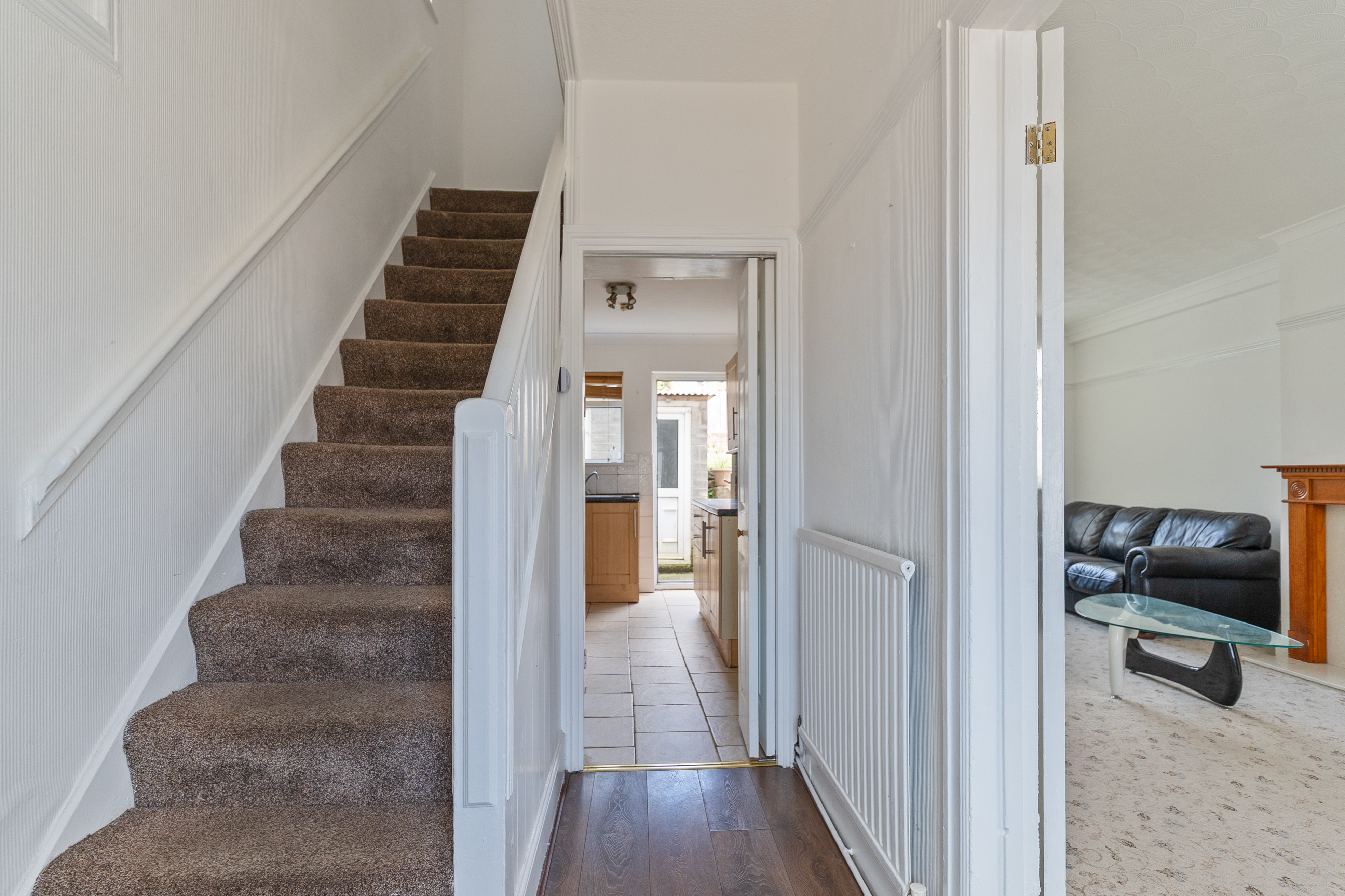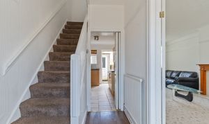You enter the property through the hallway, which provides access to the main ground floor living areas and the staircase leading to the first floor. To the right is the naturally bright and spacious open plan lounge and dining room, featuring a bay-fronted window that allows plenty of natural light to fill the space. This versatile room offers ample space for both seating and dining, making it ideal for everyday living and entertaining. To the rear of the property is the fitted kitchen, which provides practical storage and workspace.