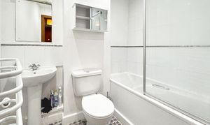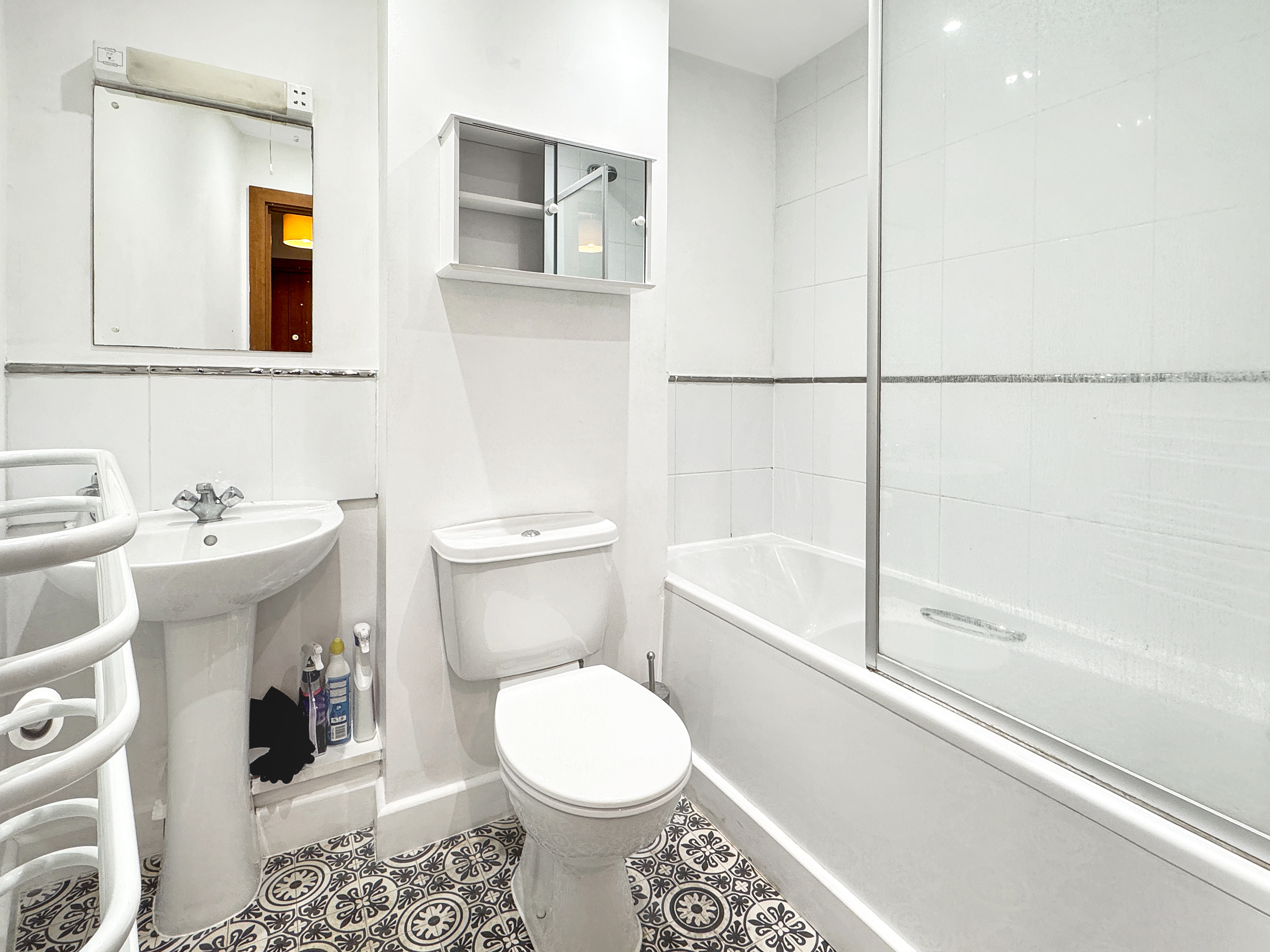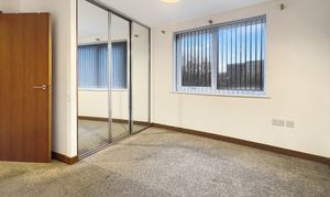 There are two bedrooms, both enjoying rear-facing views over the river. The main bedroom includes built-in mirrored wardrobes. The bathroom is fitted with a bath and shower over, WC, wash basin, heated towel rail, part-tiled walls, and an extractor fan.