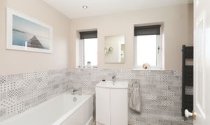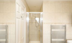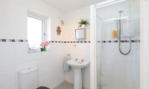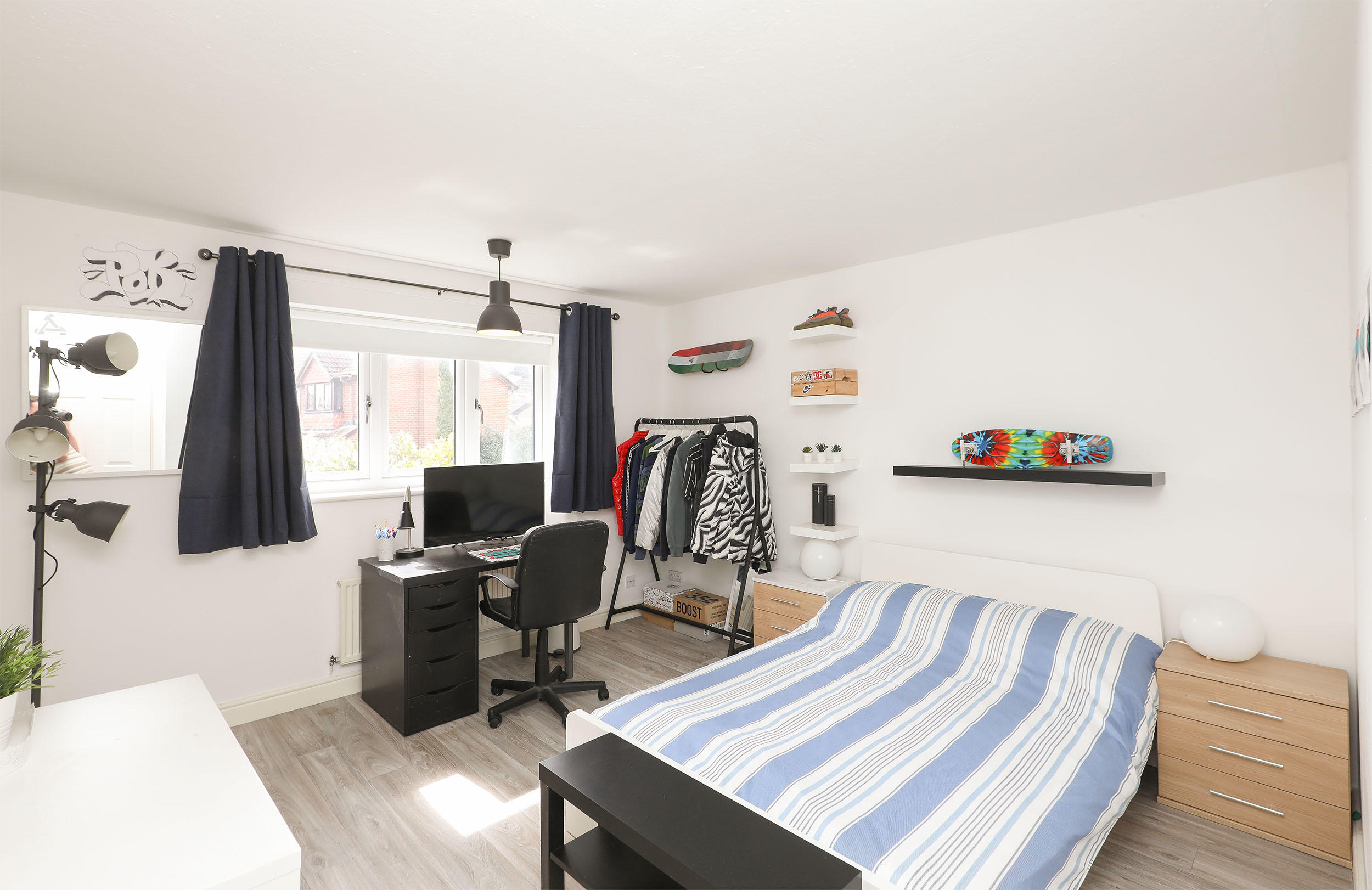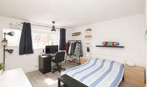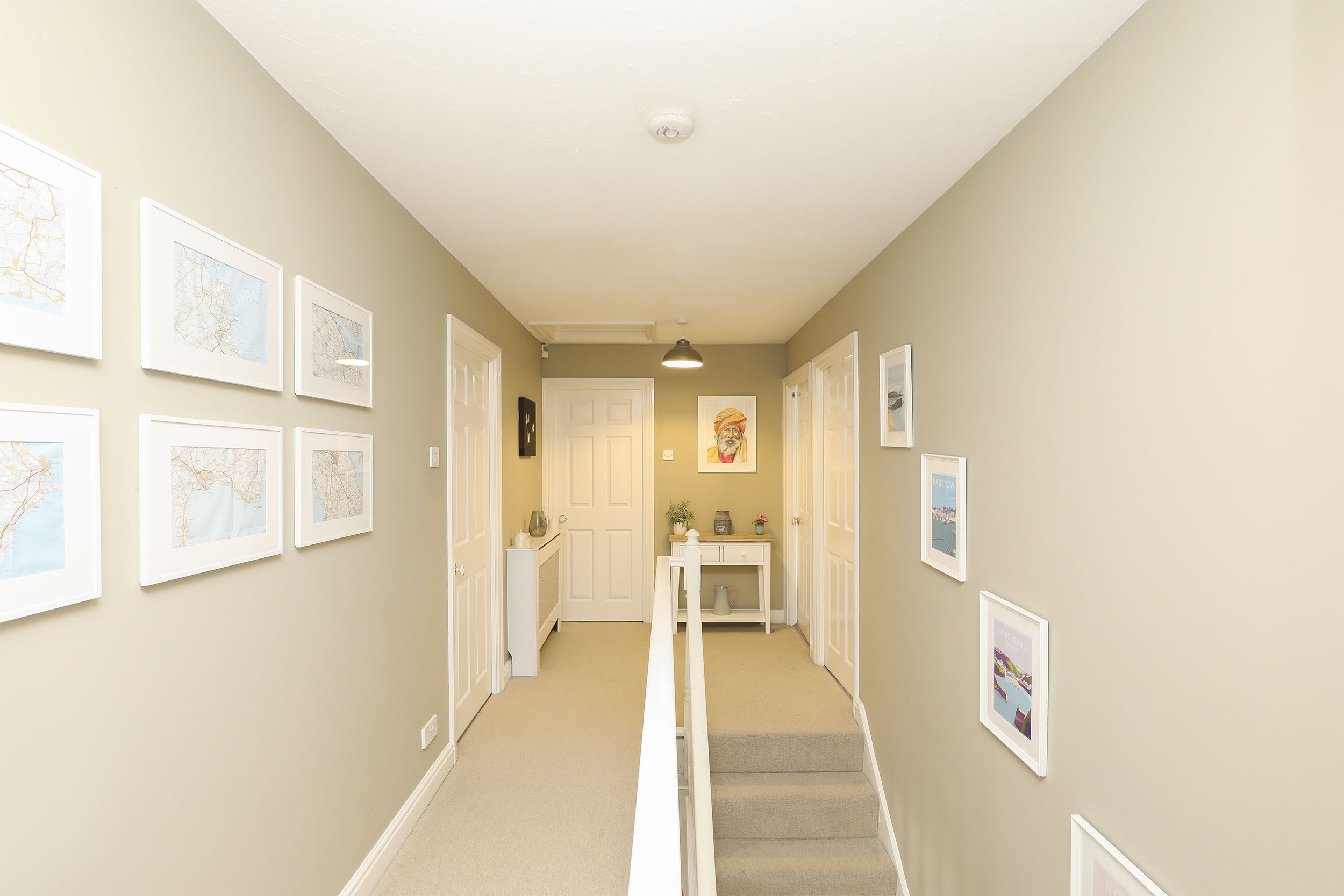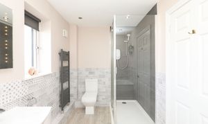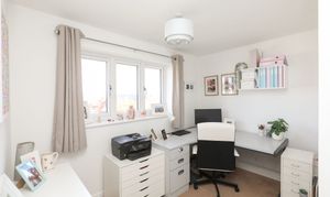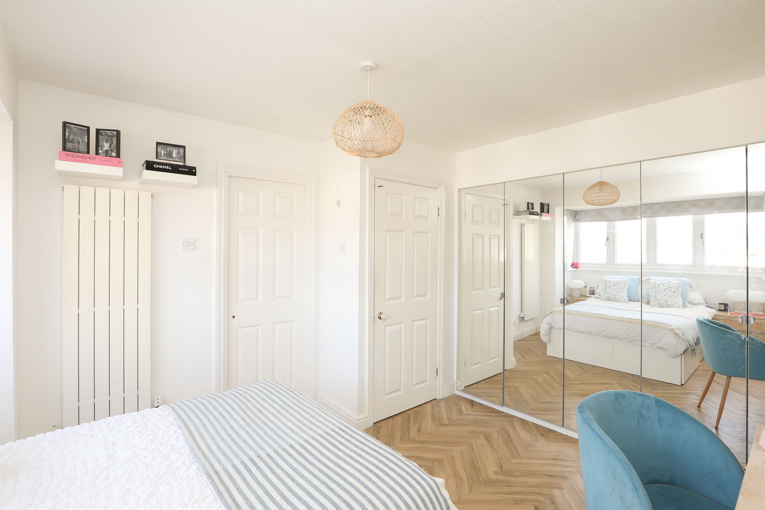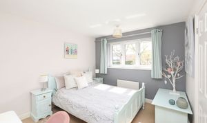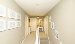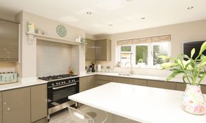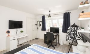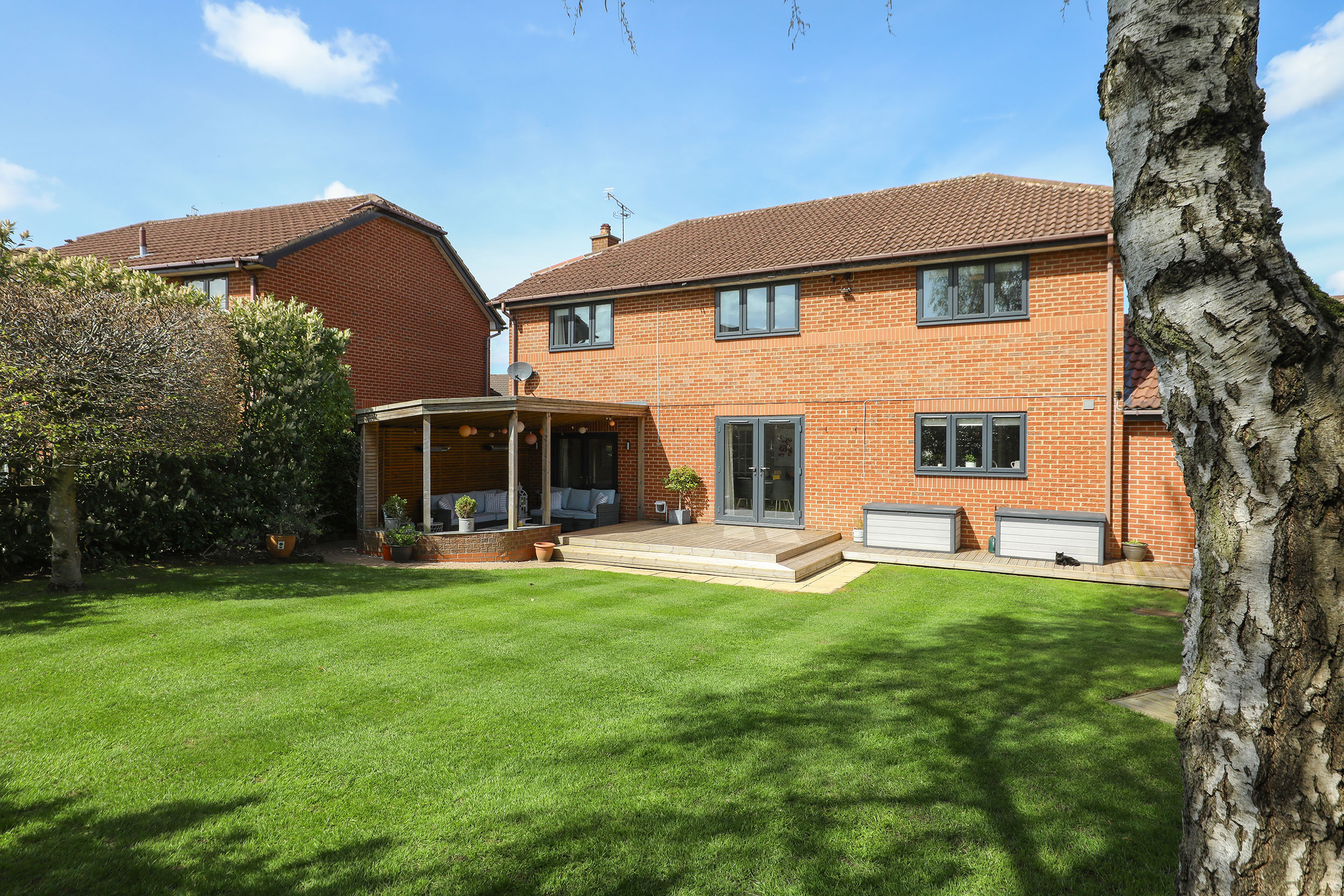 To the first floor, a spacious landing leads to five well-proportioned bedrooms. The principal suite benefits from fitted wardrobes and a beautifully appointed en-suite bathroom featuring a contemporary four-piece suite. The second bedroom also enjoys fitted wardrobes, an en-suite shower room, and the added charm of a bay window. The remaining three bedrooms are all generously sized and are served by a family bathroom complete with a modern four-piece suite.