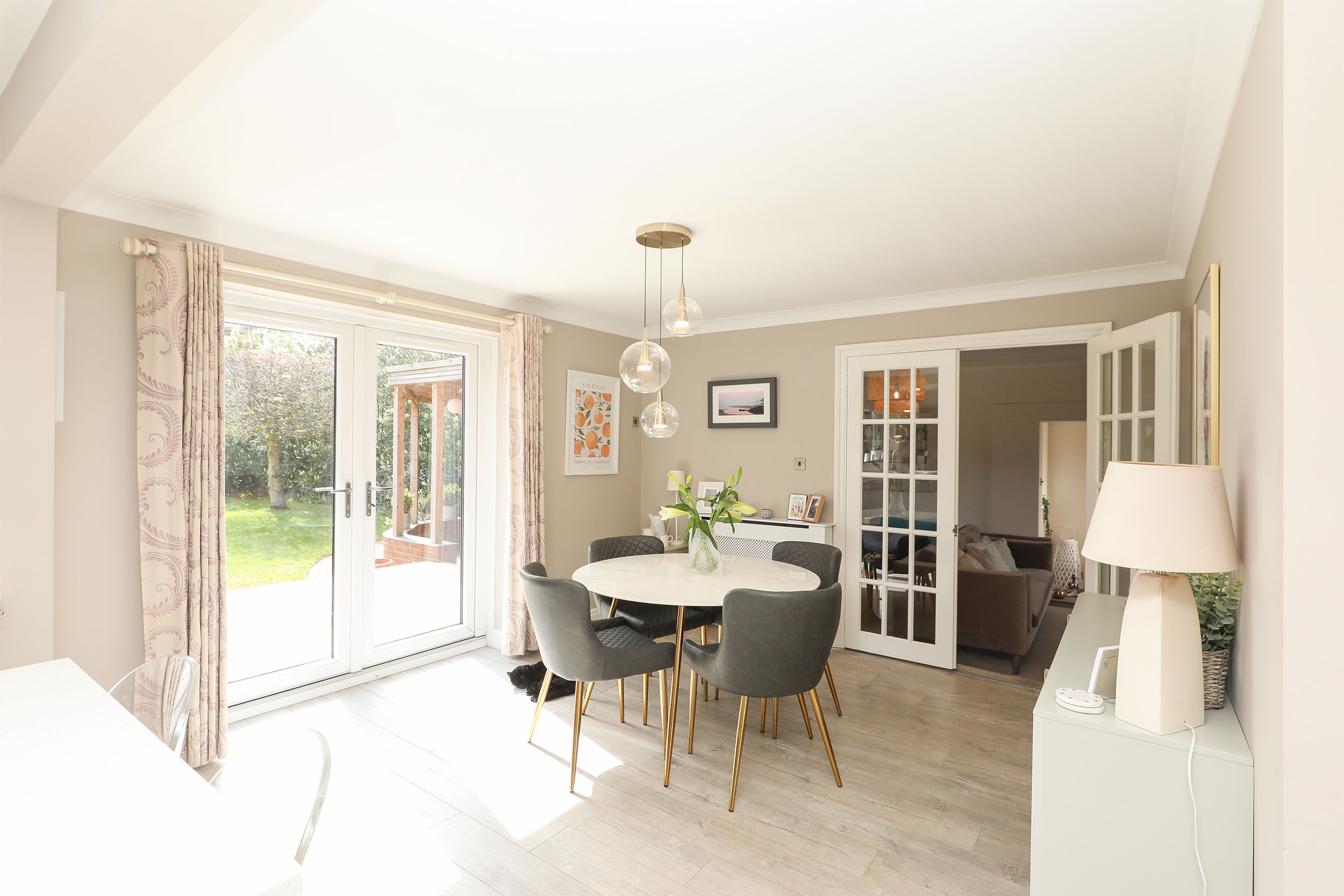A generously proportioned, bay-windowed lounge offers a superb setting to relax the natural light floods the room, creating a warm and inviting atmosphere. A separate living room adds further versatility, flooded in natural light and complete with bi-folding doors opening onto the garden, ideal for both everyday living and entertaining.