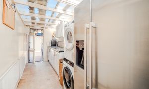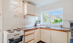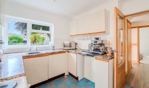 The kitchen is located to the right of the property with an electric oven and undercounter storage- whilst also having room for a fridge/freezer. While functional, there is plenty of opportunity for new owners to put their stamp on this area. A door leads through to the naturally well-lit and spacious utility where there are doors that open out to the front and rear of the property. While there is scope for enhancement, the utility offers storage space accompanied by a sink and plenty room for a washer/dryer or other appliances.