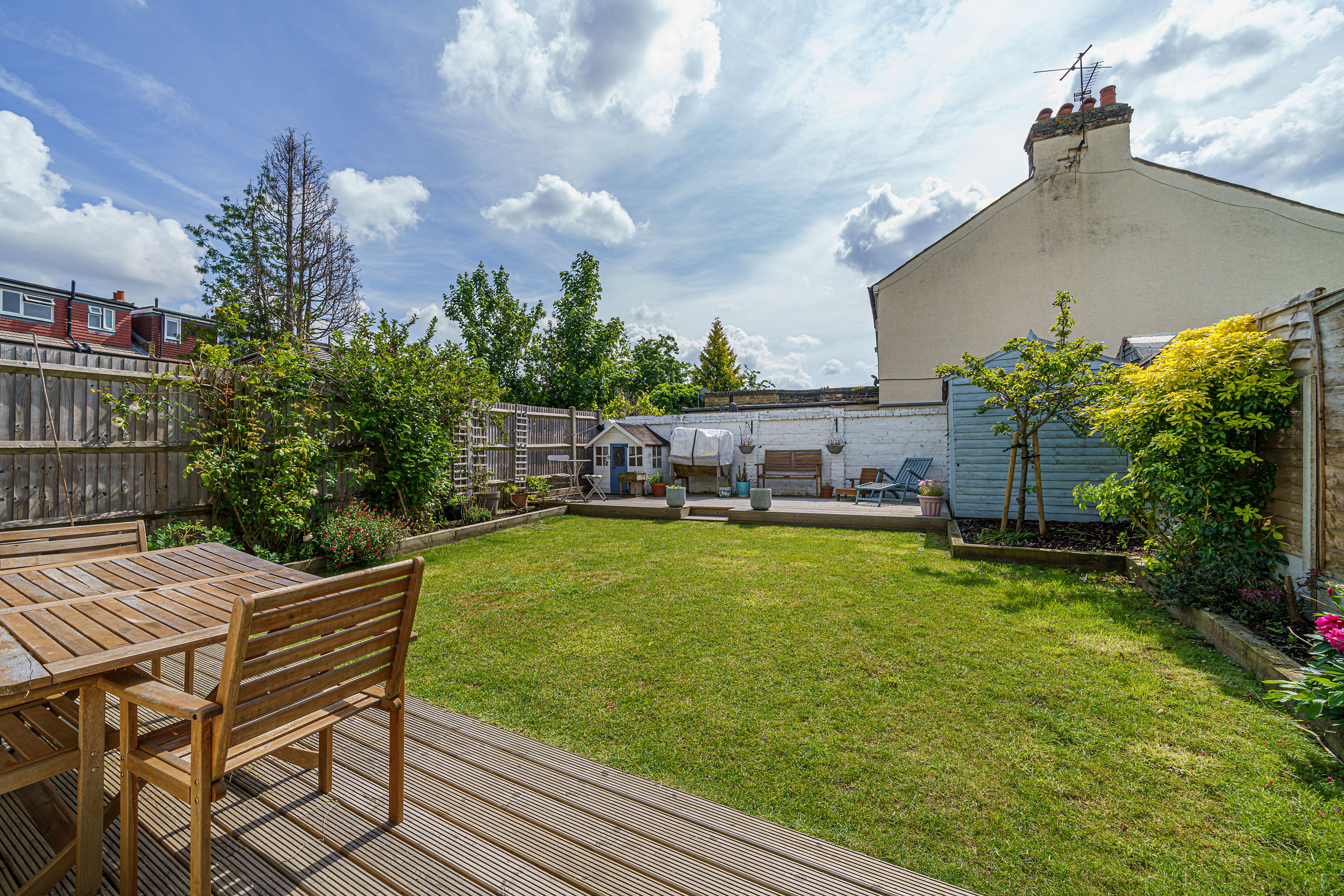 Downstairs, this property provides a bright entrance hall with downstairs WC and under stair storage. A well decorated front reception room with shutters, a modern open plan kitchen/lounge which also benefits from integrated appliances such as induction hob, fridge/freezer, dishwasher and washing machine. This leads out into the well maintained garden which provides decked area and turfed area along with a shed perfect for storage.