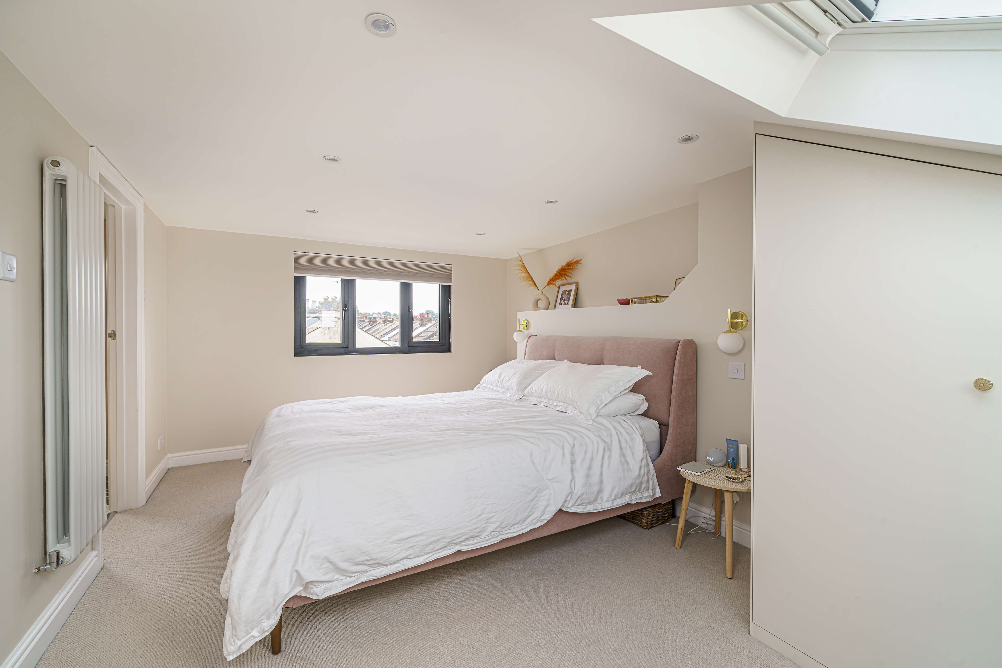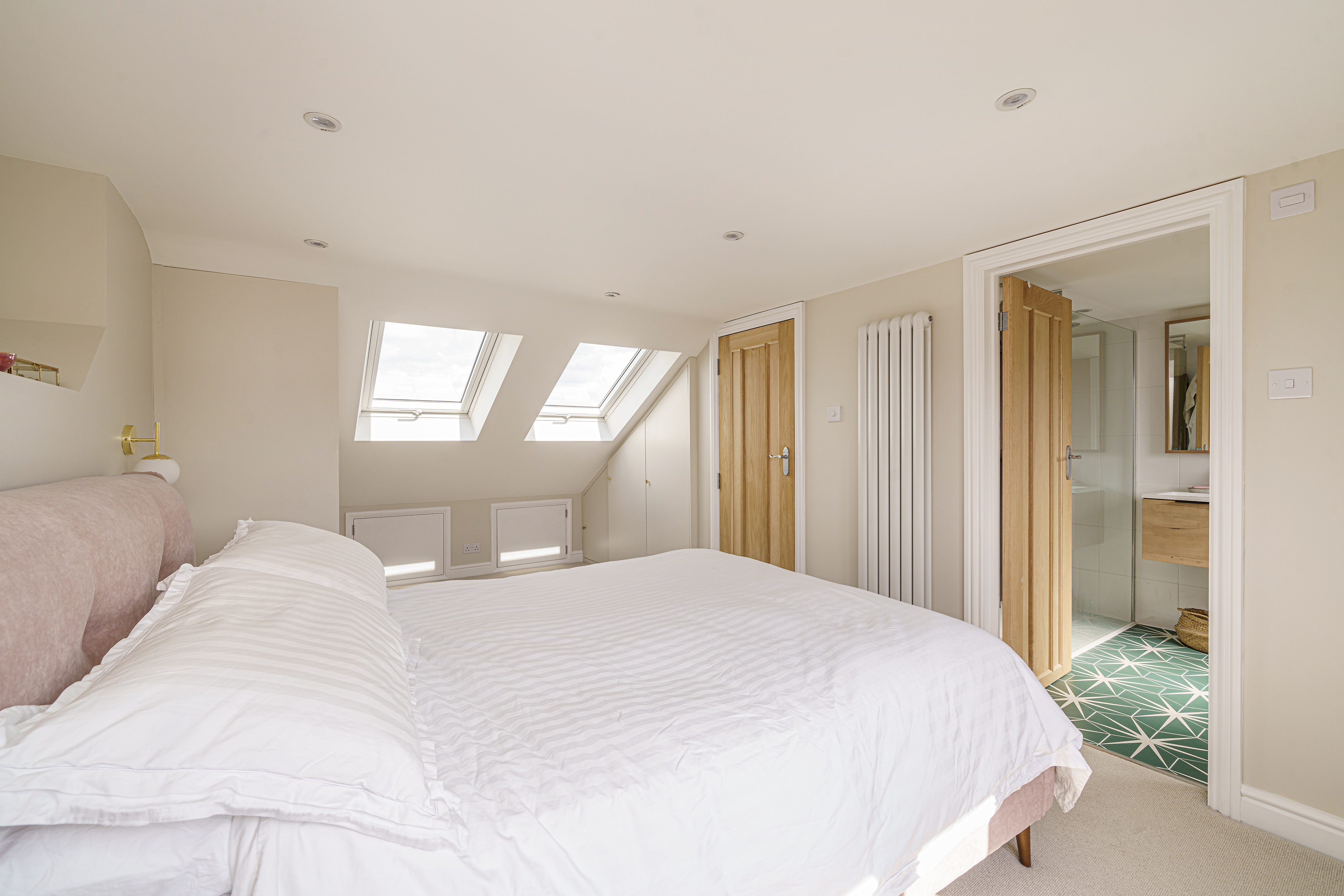 The loft has been converted to create a large master bedroom with en-suite. This room provides built in wardrobes designed to the specification of the room and eaves storage. It also provides a beautifully designed en-suite.