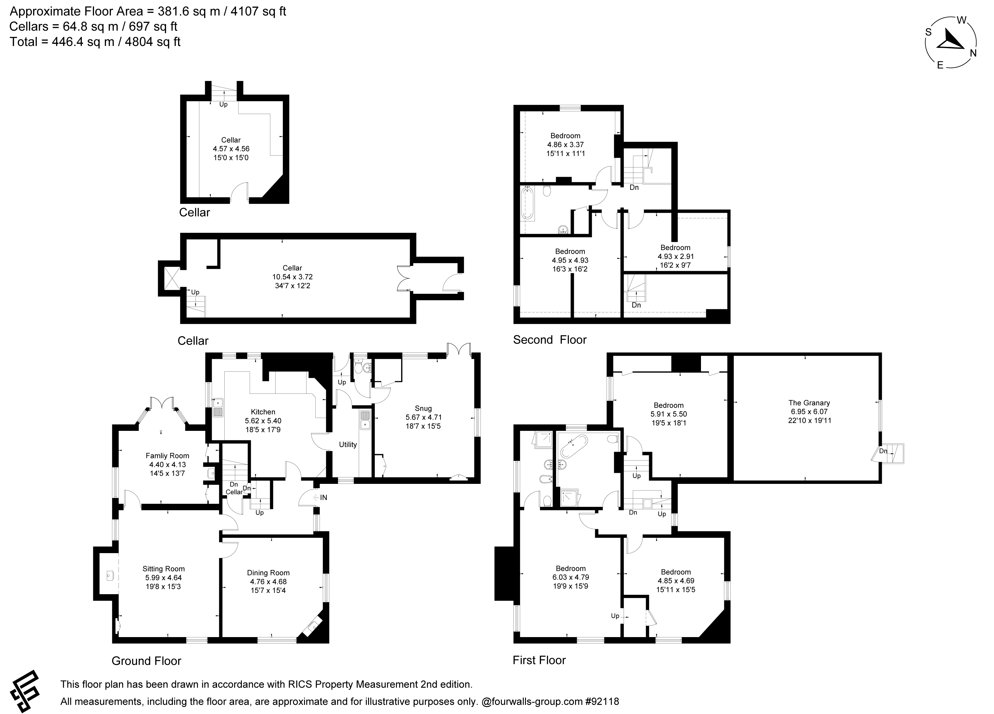 - Over 5,000 sq ft of accommodation – generously sized property with multiple reception rooms, six bedrooms, and versatile outbuildings including a garage, workshop, and two cellars