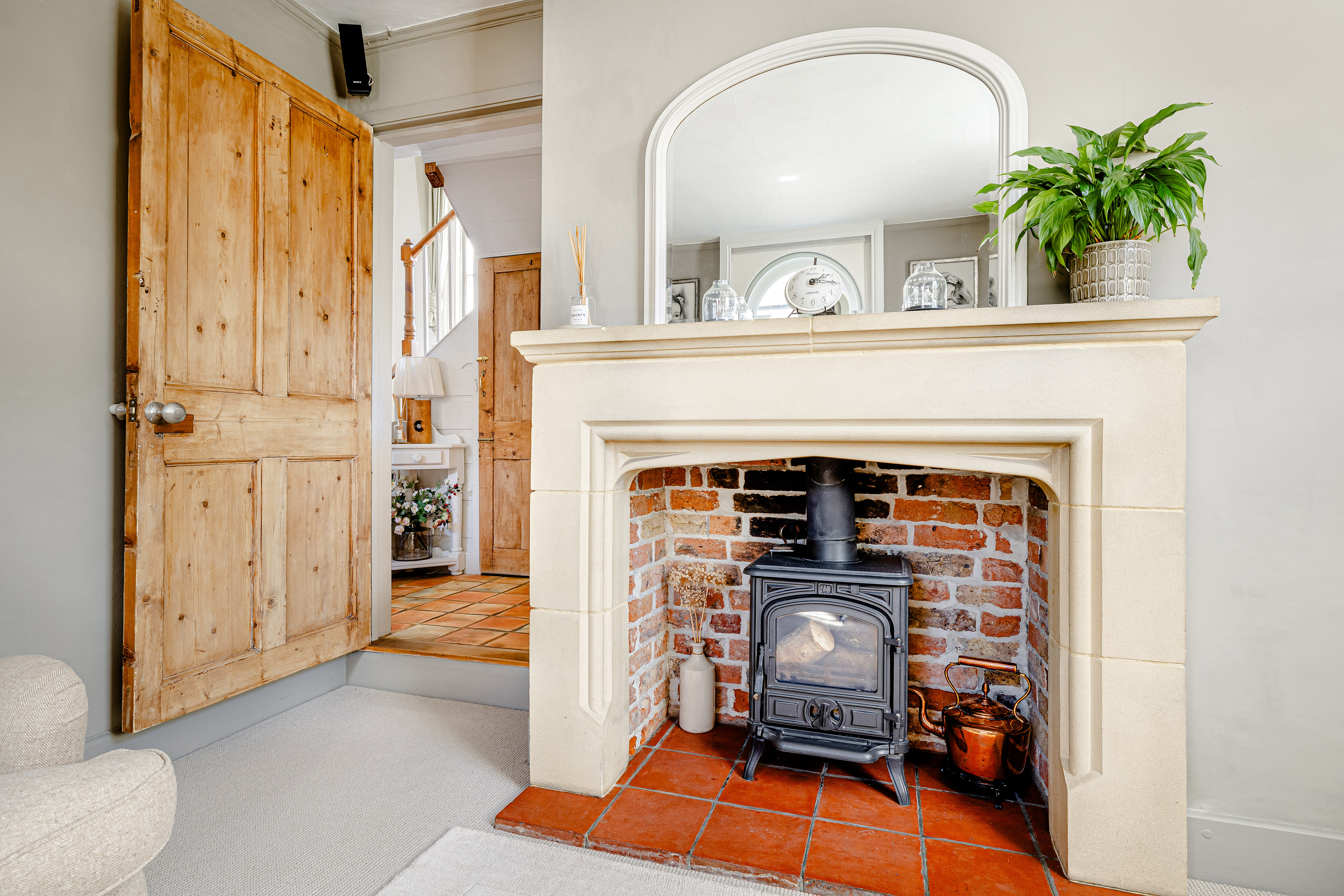 The handsome red brick frontage, arched sash windows, and decorative entrance porch immediately showcase the home’s Georgian heritage. Inside, accommodation extends to over 1,230 sq. ft. plus a cellar, blending historic charm with modern-day comforts.