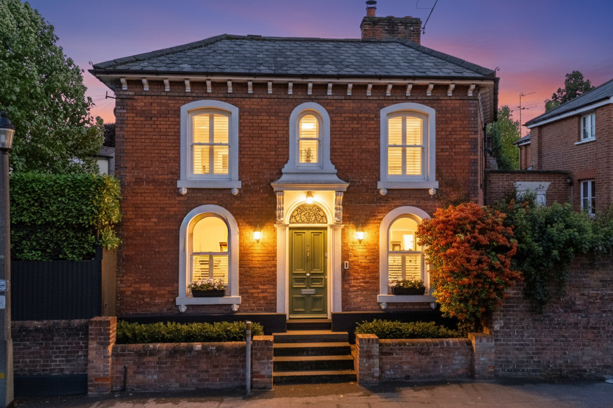- Elegant Victorian detached home with striking red brick façade and arched sash windows