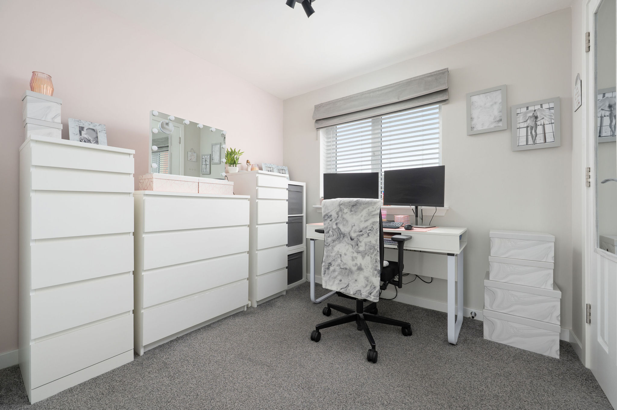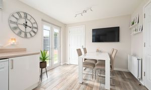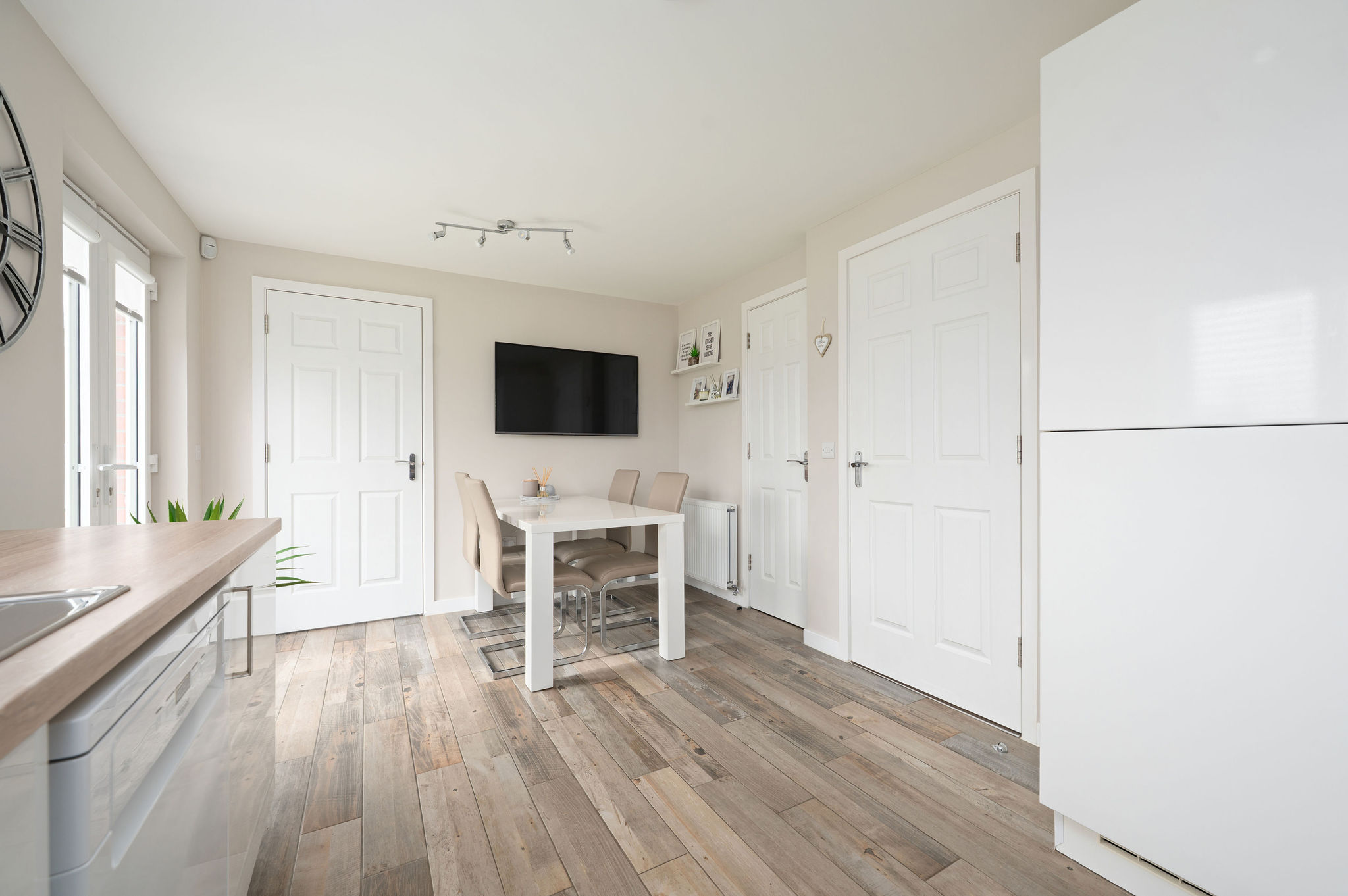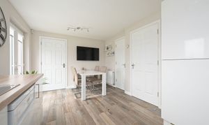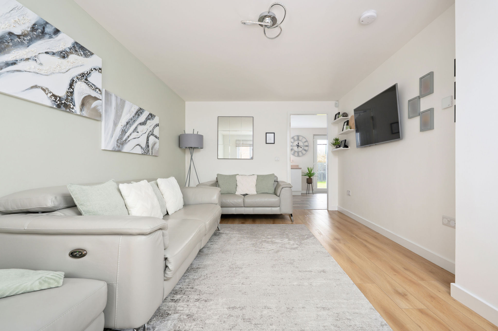 The ground floor welcomes you with a bright and inviting lounge, ideal for relaxing evenings, alongside a versatile second family room complete with built in storage. This space can easily be utilised as a fifth bedroom, home office or playroom depending on your needs. The heart of the home is the stylish dining kitchen, thoughtfully designed with a built in gas hob, electric oven, and fridge freezer, with French doors opening directly onto the rear garden; perfect for entertaining and indoor/outdoor living. A separate utility room and convenient WC complete the lower level.