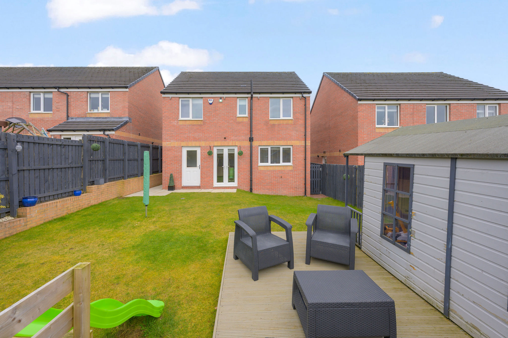 Externally, the generous southerly facing rear garden is laid to lawn with a decked area and a charming summer house making it the ideal space for family living, gardening or outdoor dining. To the front, a large resin driveway provides off street parking for up to three vehicles.