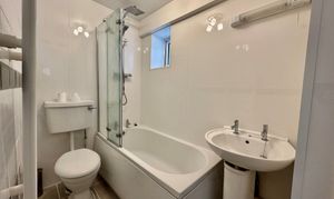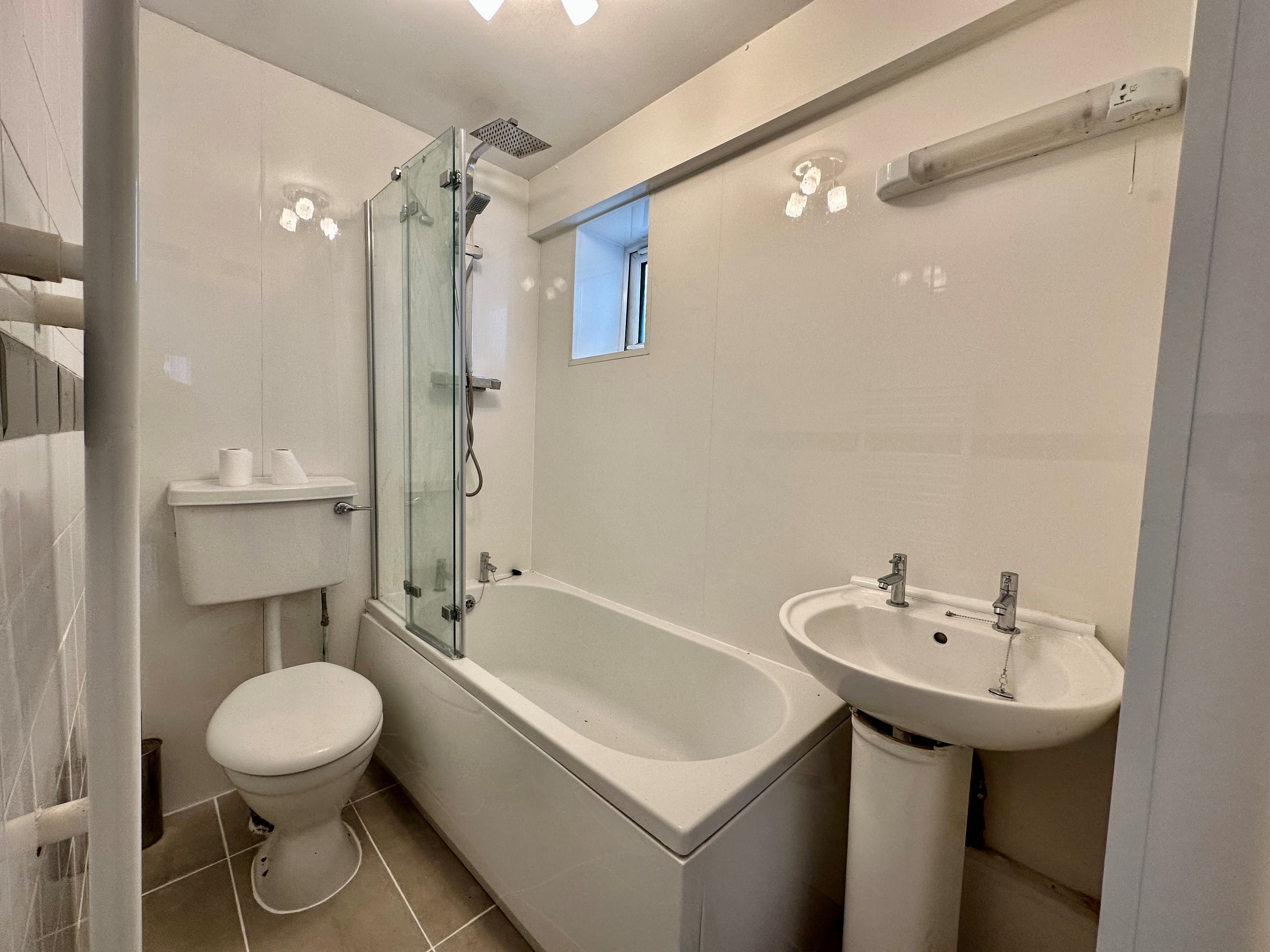 The bathroom includes WC, Basin, Bath and Overhead shower.