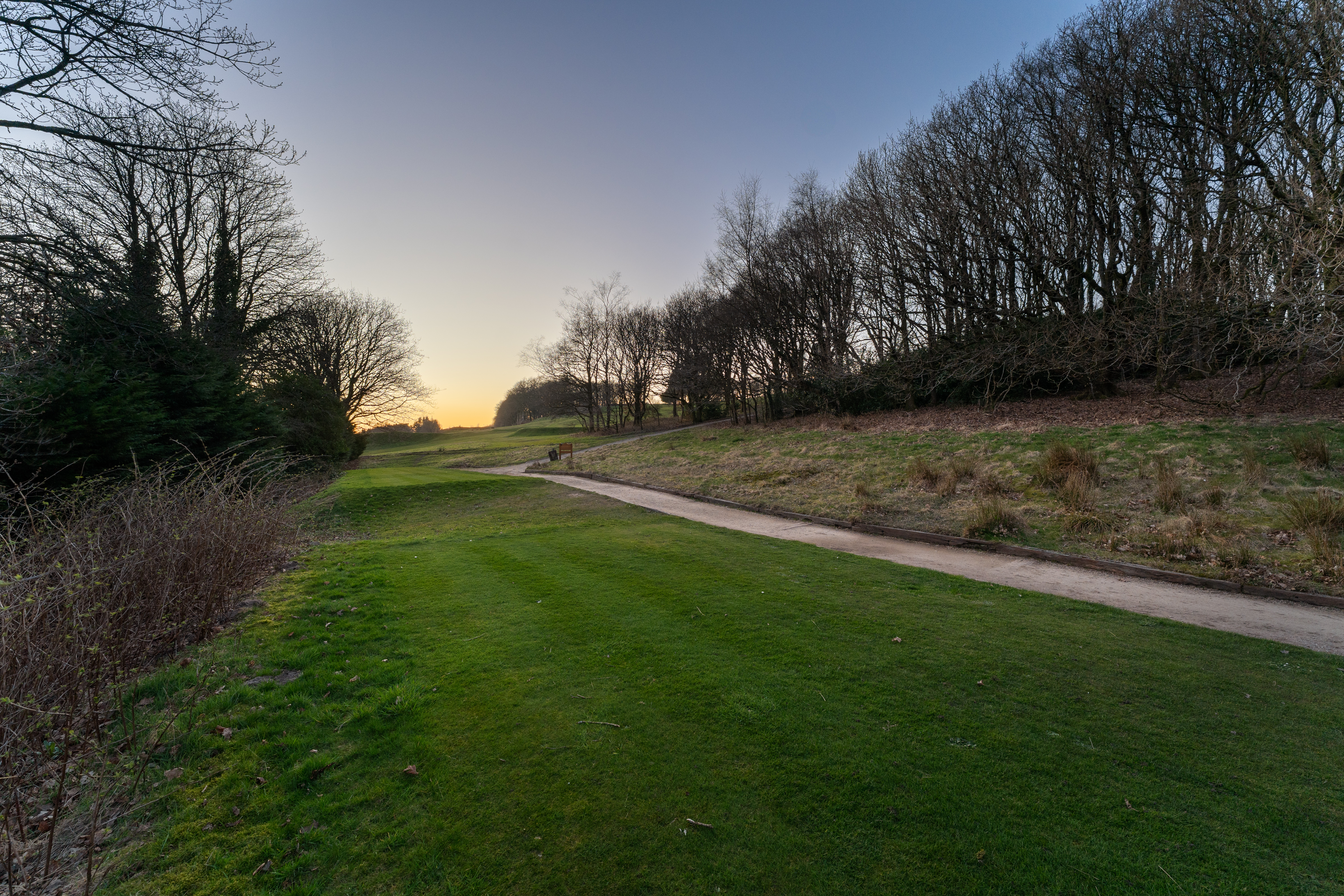 Head up the gravelled steps from the west courtyard by the dining room doors, passing an abundant stone-walled flower and shrub border as you reach the rear lawn. Gently sloping and screened by high fencing and the neighbouring golf course, it’s peppered with pretty flowers and shrubs and links back to those big bi-folds inviting you into the primary suite.